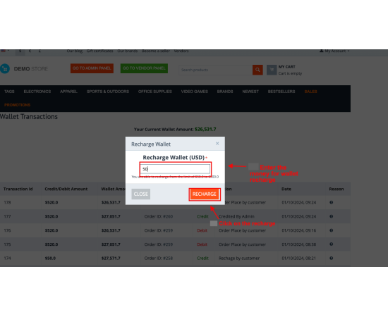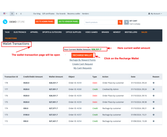 With this addon, we provide two additional free add-ons Transfer Wallet Cash to Account and Convert Reward points to Wallet Cash.
