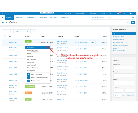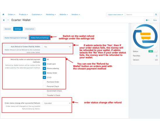 - Status-Based Wallet Recharge: Grant wallet recharge capability upon completing orders with a designated status.