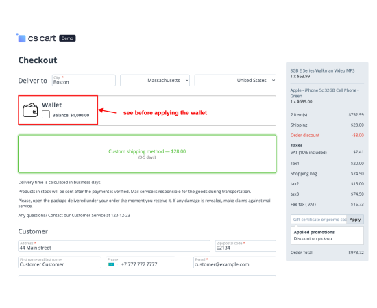 The CS-Cart Wallet System is a special add-on for your online shop. It lets customers add money to their virtual wallets and use it for purchases. If necessary, the store owner(admin) can also add money to a customer's wallet. This tool makes it easy for both the store admin and customers to track all the money movements in the wallet.