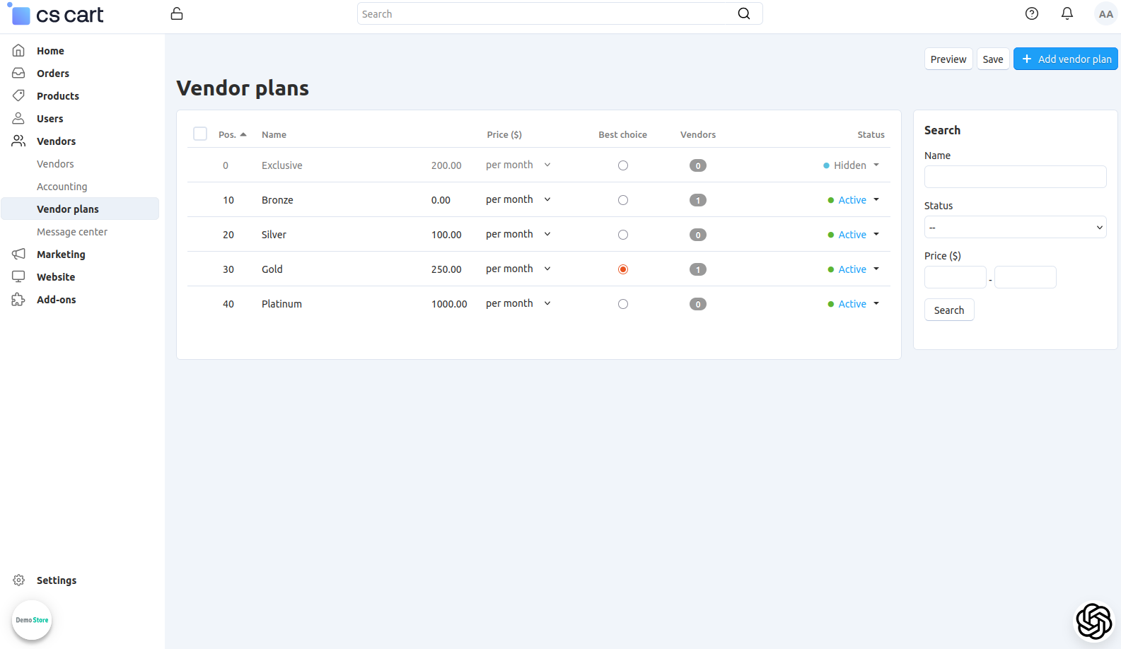 CS-Cart Support Info: The addon is well integrated with CS-Cart Multi-Vendor and can be used with its Standard, Plus, and Ultimate versions.