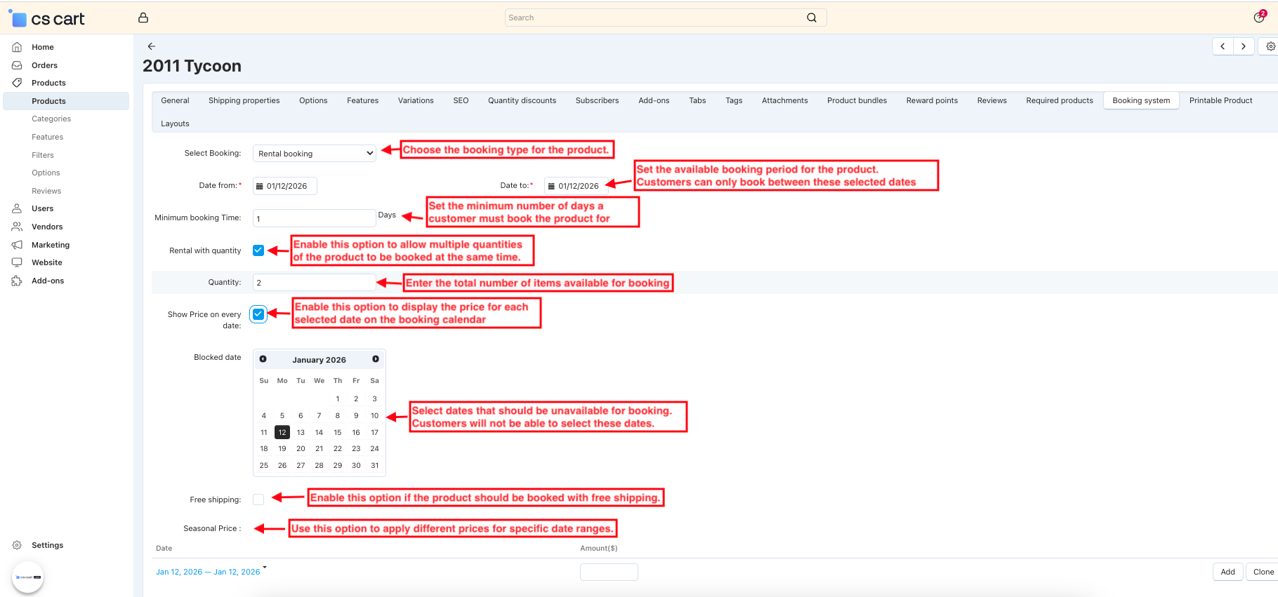 1). Admin/Vendor can add a Price for every date.
