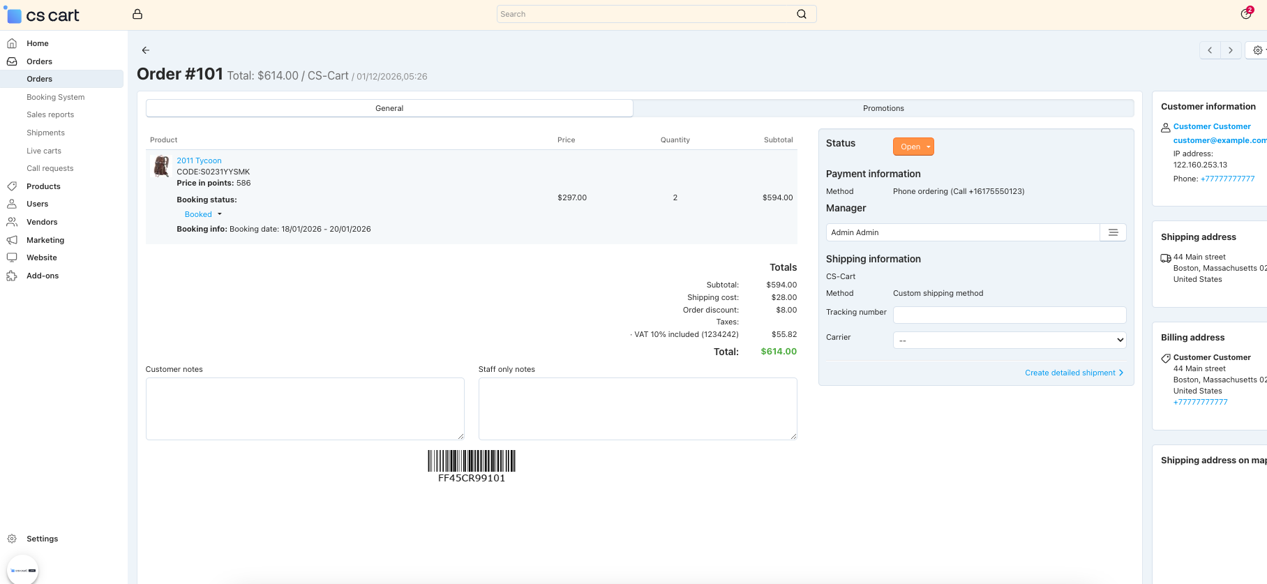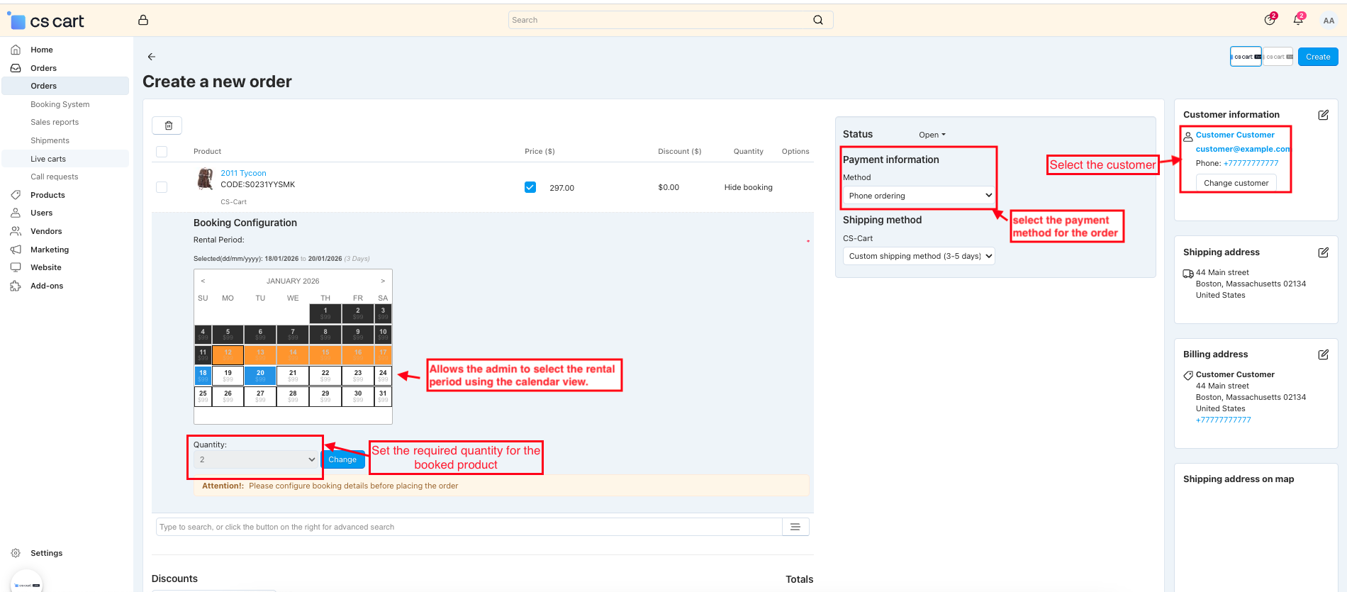 Booking System add-on for CS-Cart helps users to create and manage online booking services like restaurant table booking, any medical appointments, hotel room booking, etc. The main purpose of developing this addon is to organize the booking systems at the CS-Cart end. It is easy and flexible to use for various types of online booking services.