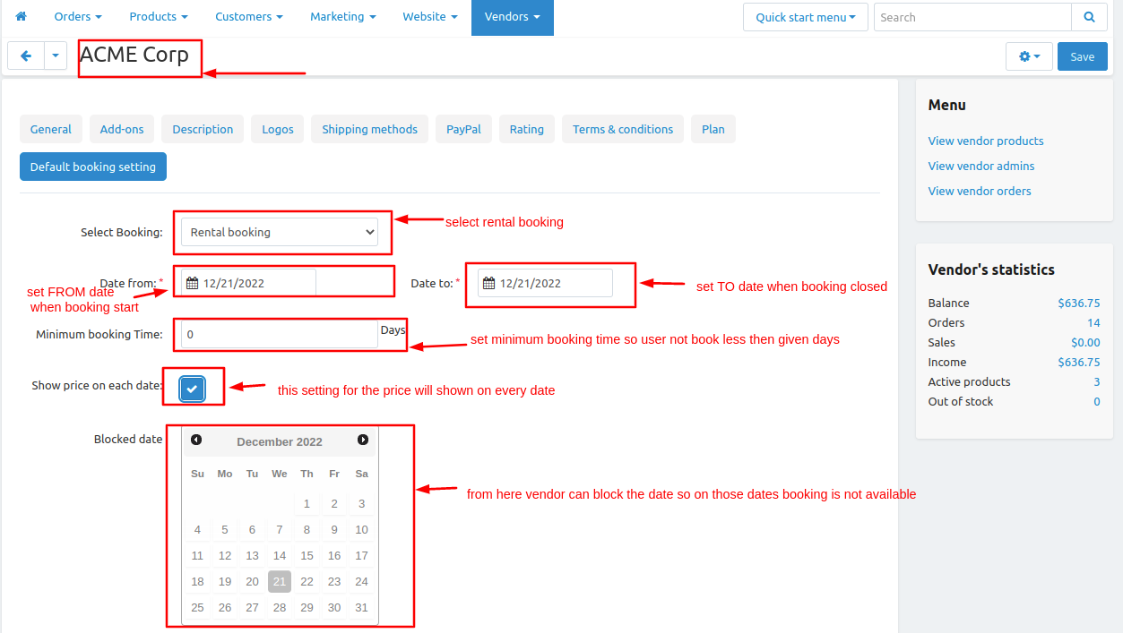 5). Admin/Vendor can set minimum booking date selection in Rental booking.
