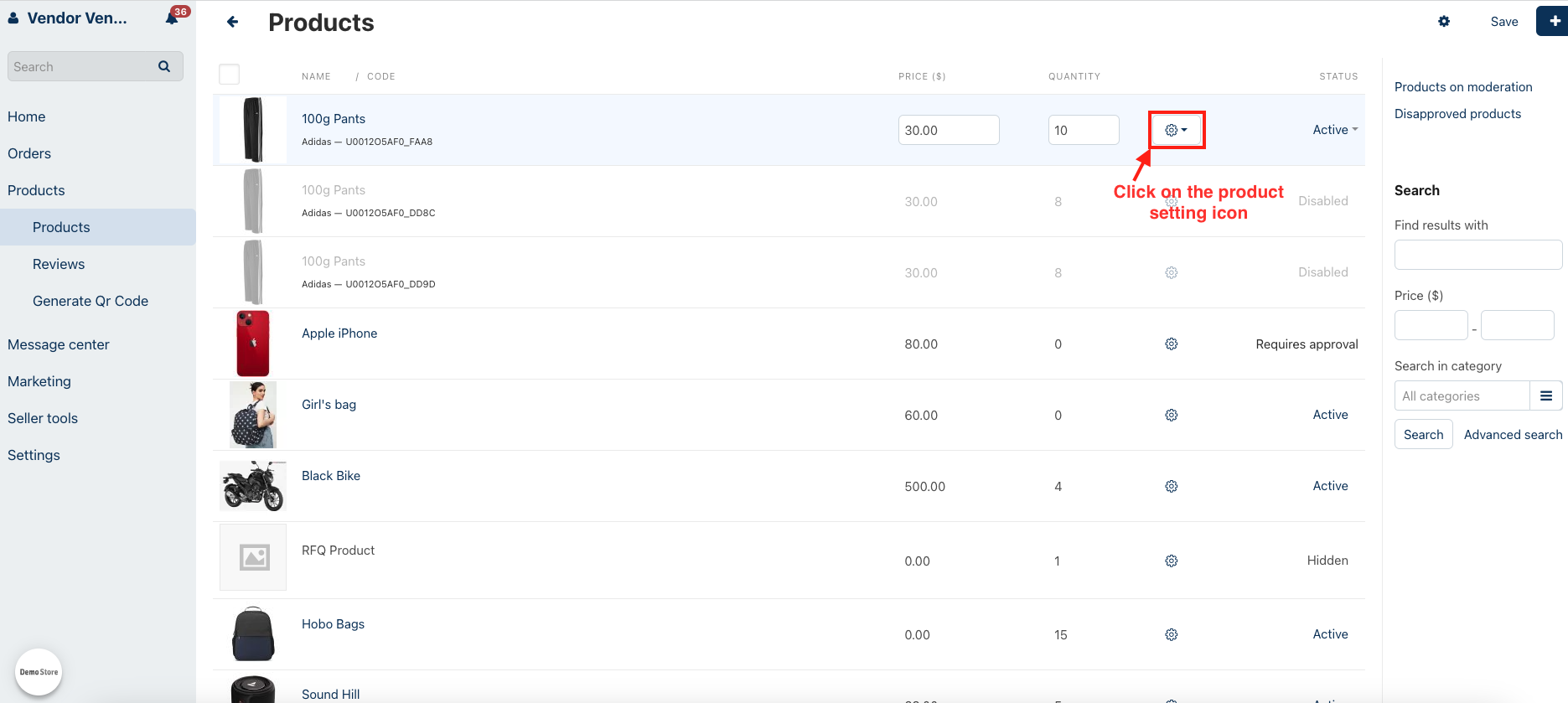 - Go to the vendor panel.