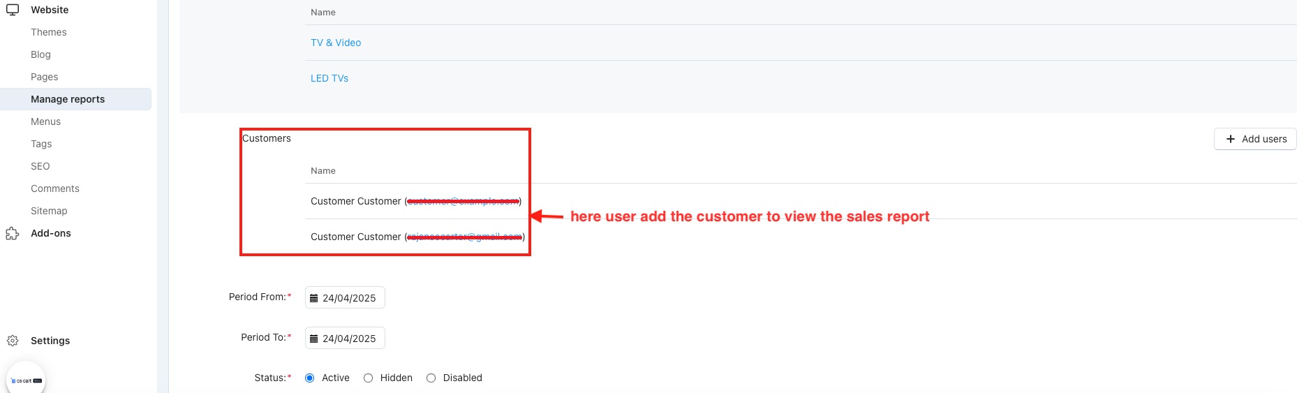 Status: Here, the user select the report status like Active, Hidden, and Disabled.