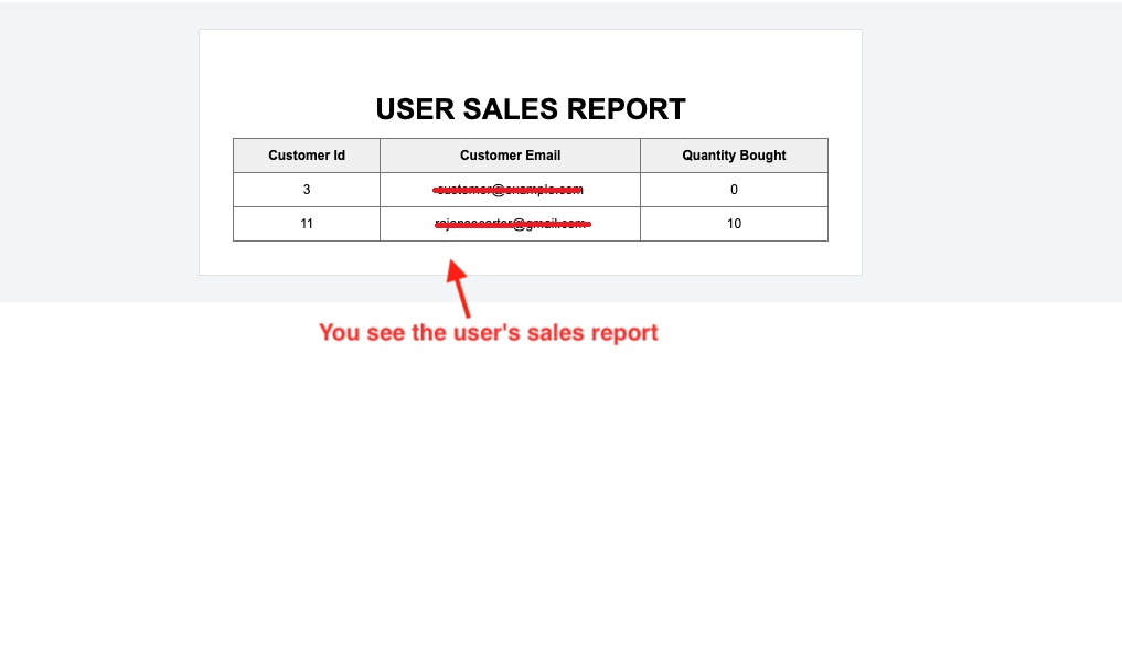 Here, you see the user sales report.