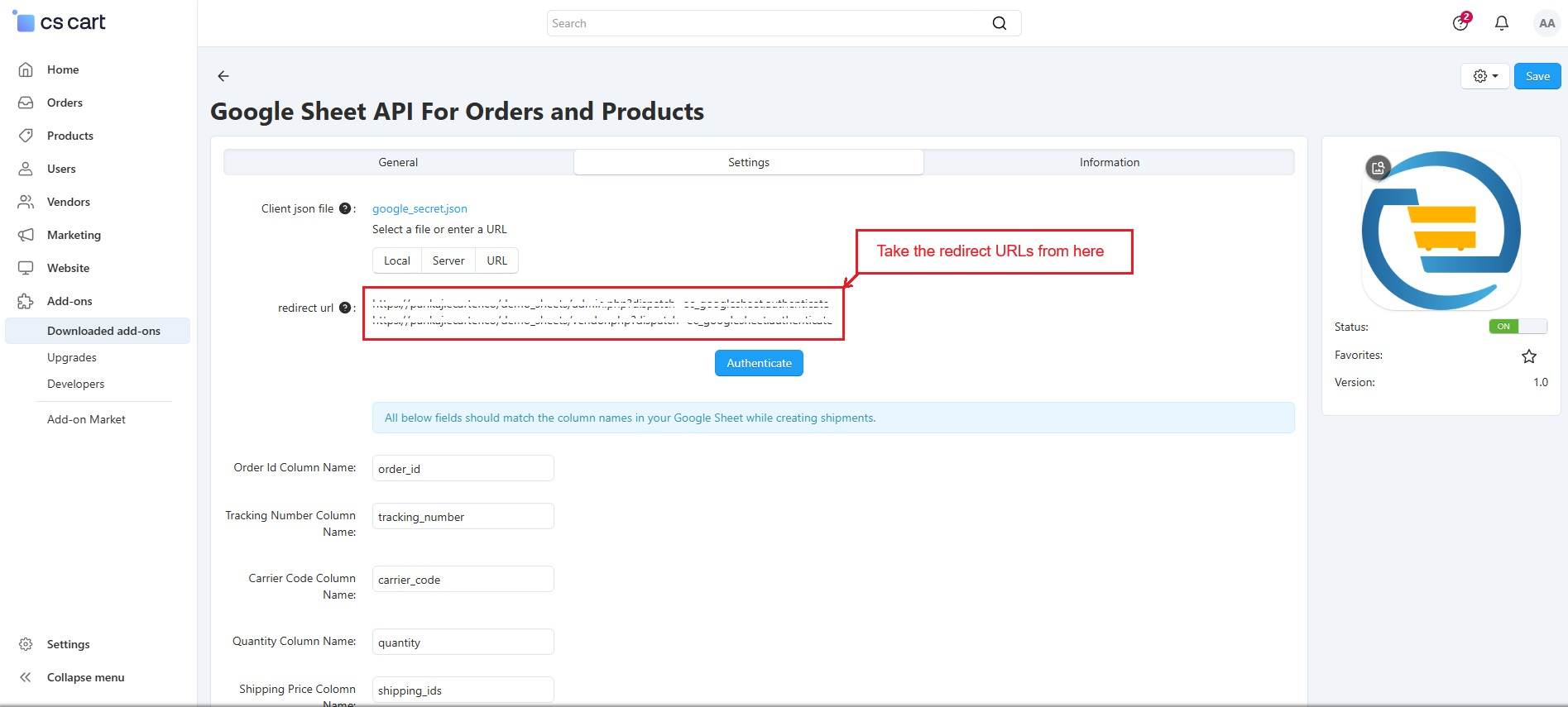 The above redirect links are available in the Settings tab of the admin panel.