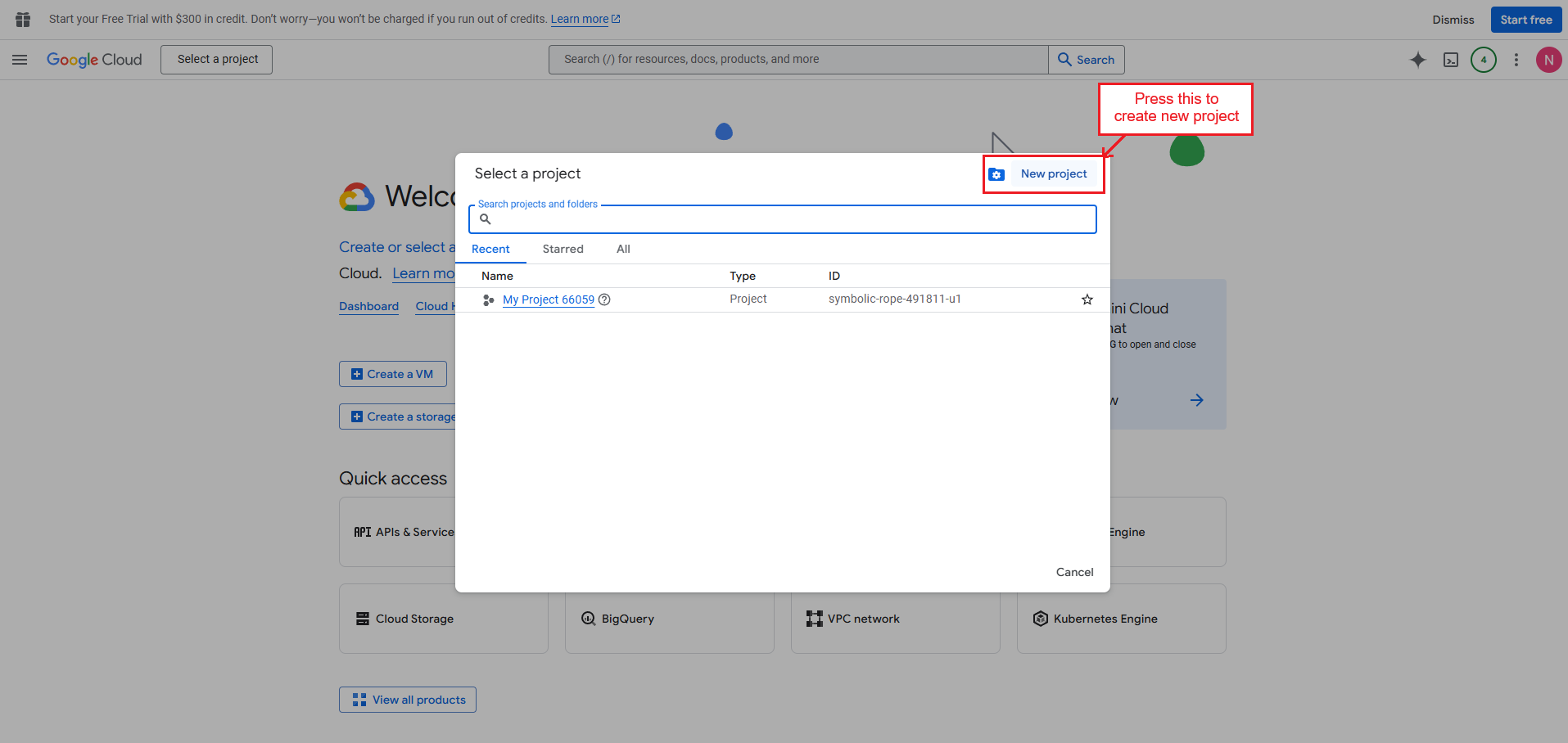 Create a Project in Google Cloud
