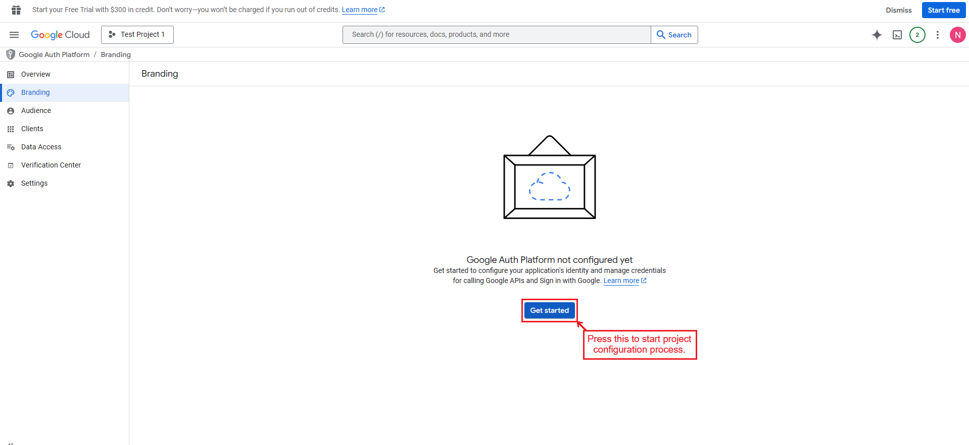 Enter “Get started” to start the project configuration process.