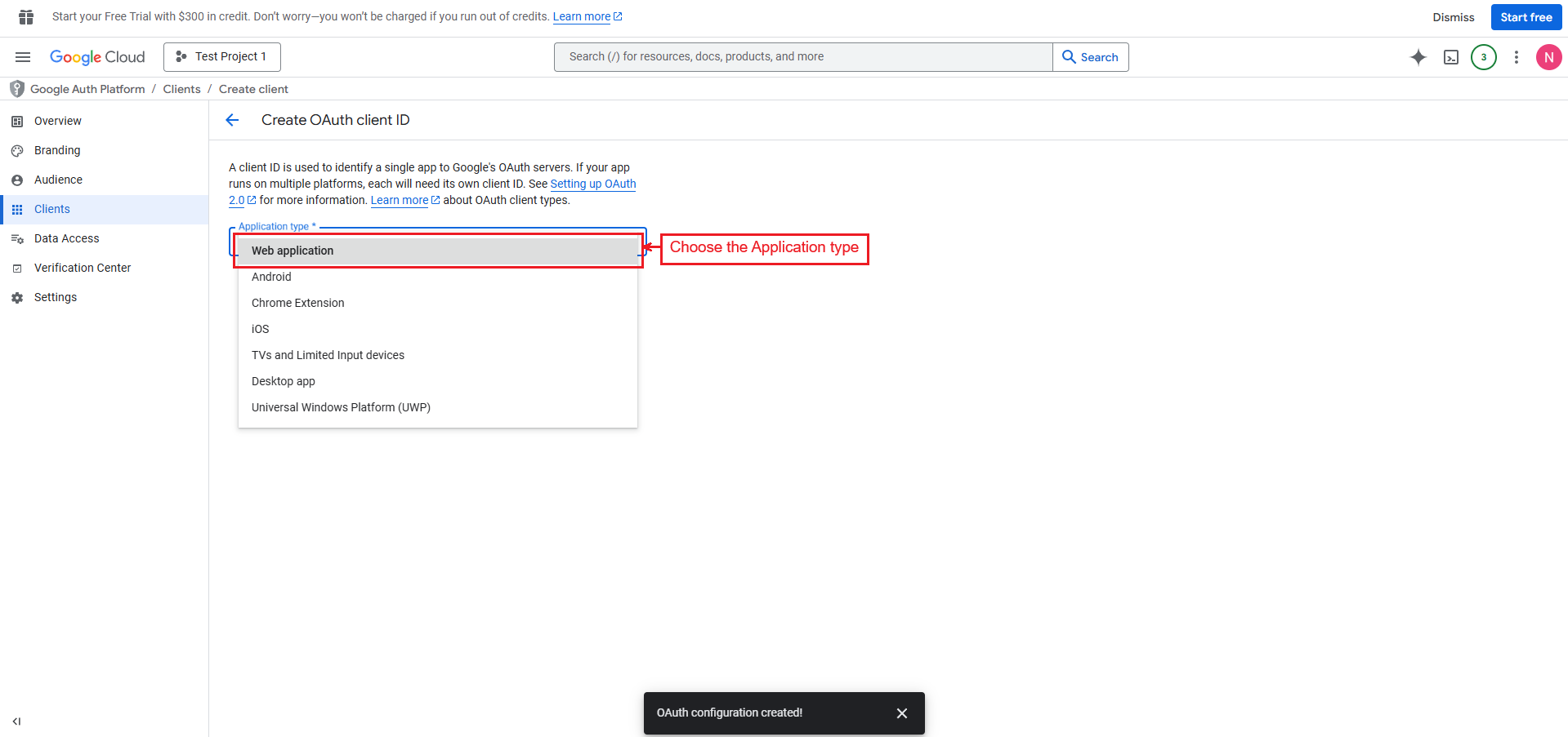 Continue by using the “Create OAuth Client”.