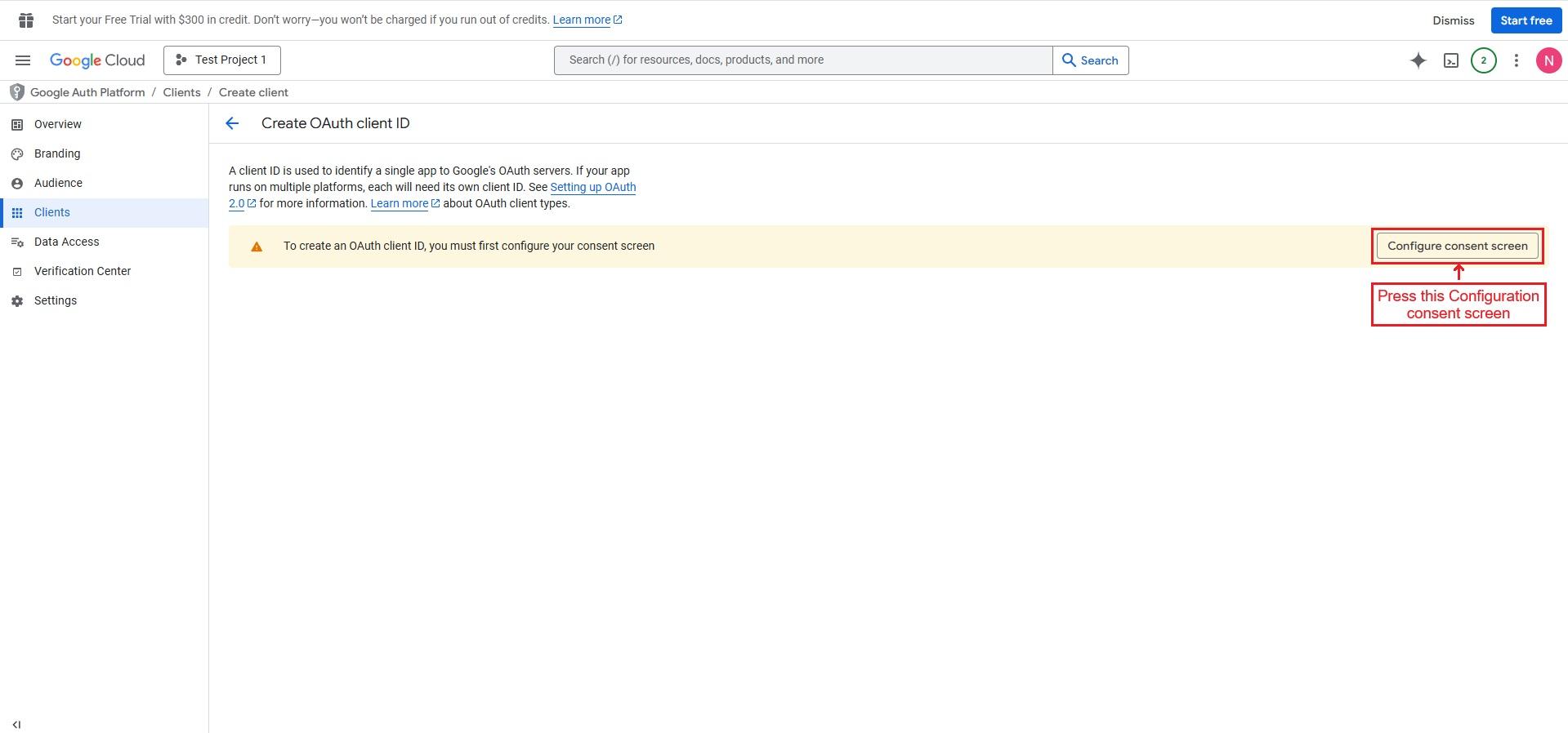 Press the Configuration consent screen.