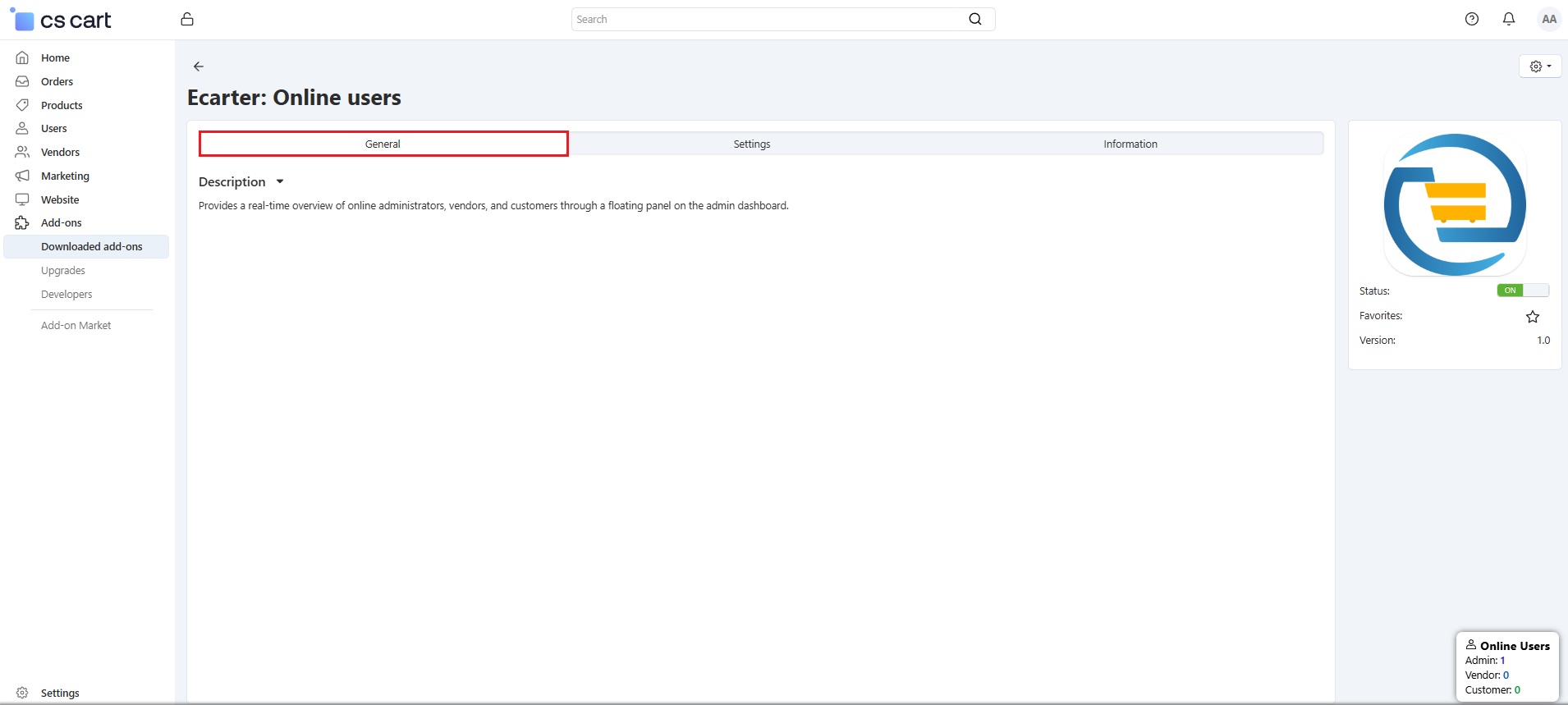 The Online Users Add-on provides a real-time view of all active users, including admins, vendors, customers, and guests, through a floating panel on the admin dashboard. It helps the admin monitor who is currently online across different panels and the store. The user count updates automatically whenever someone logs in, opens a panel, or visits the store.