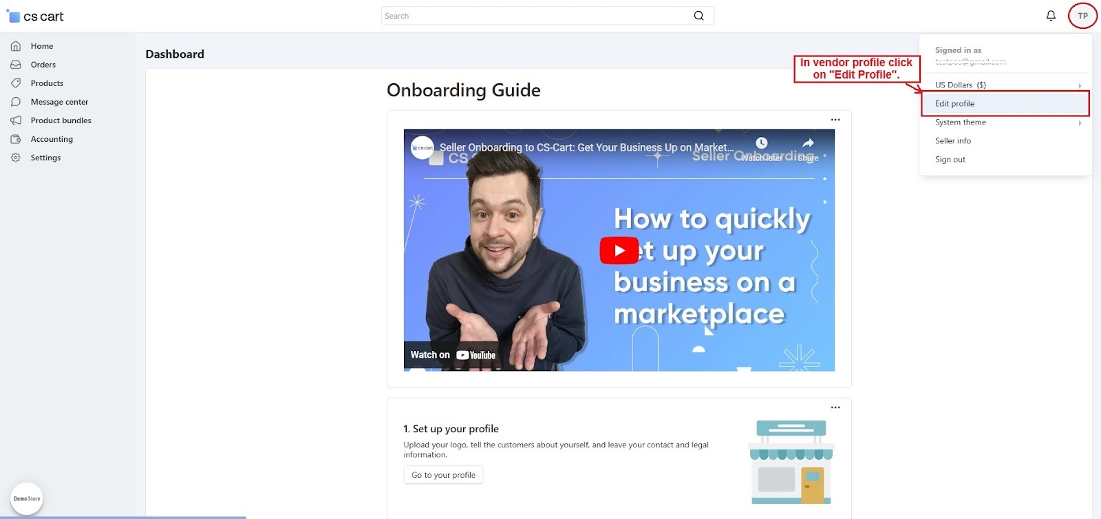 In the vendor panel, go to Vendor Profile and then click on Edit Profile.