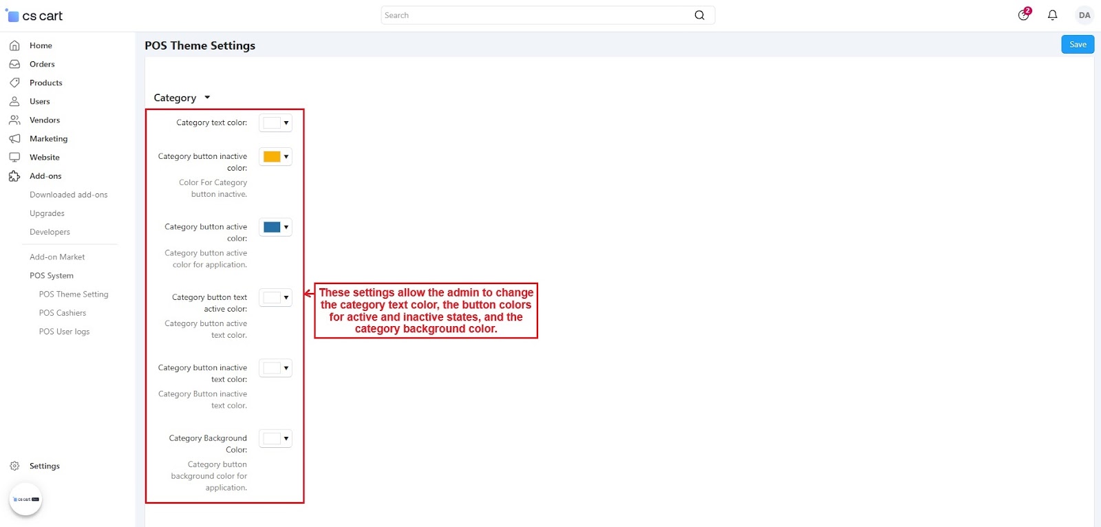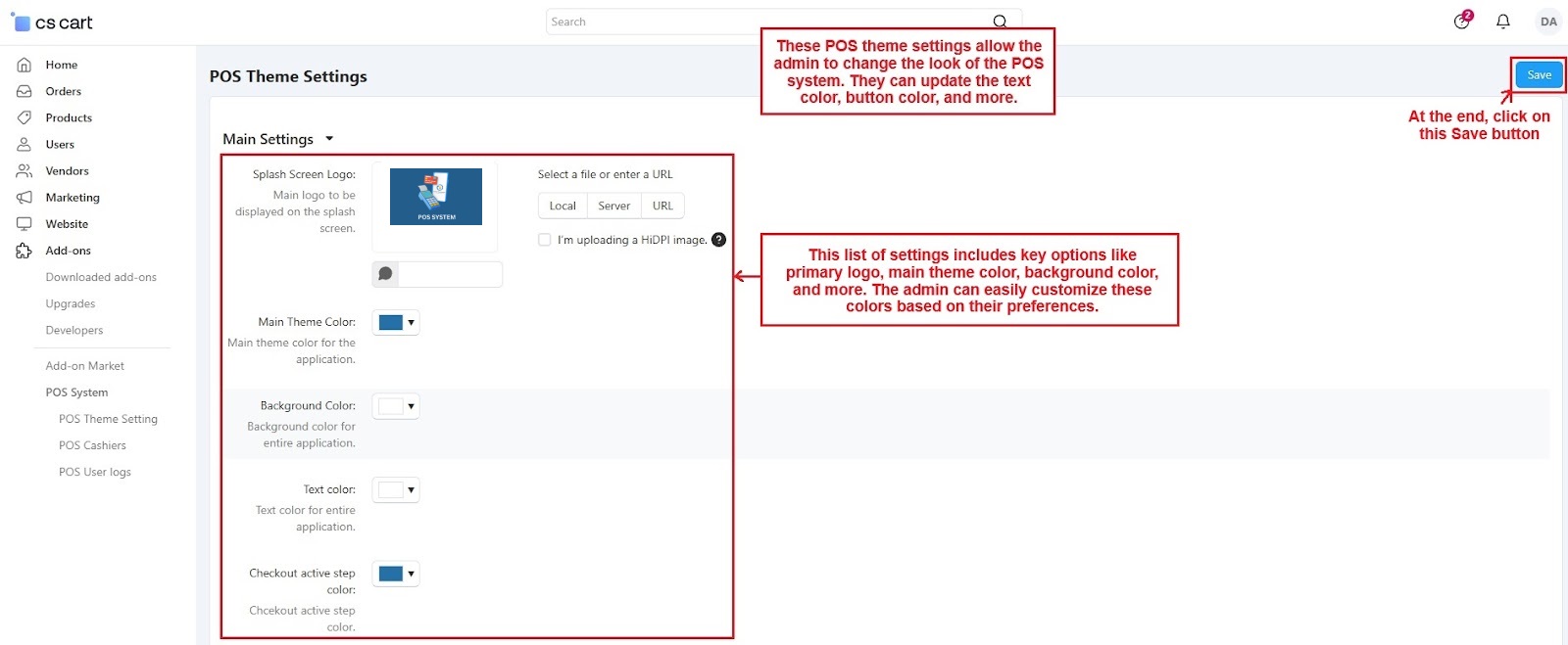POS theme settings allow the admin to change how the system looks. Using these settings, they can change Text color, button color, etc.