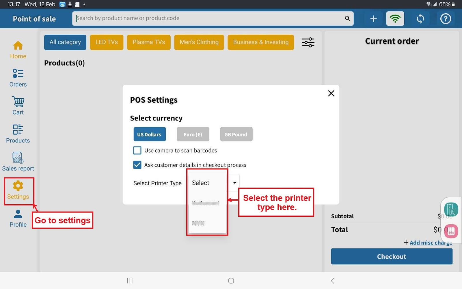 Cash payment method: To accept payment using the cash payment method, select the cash POS option.