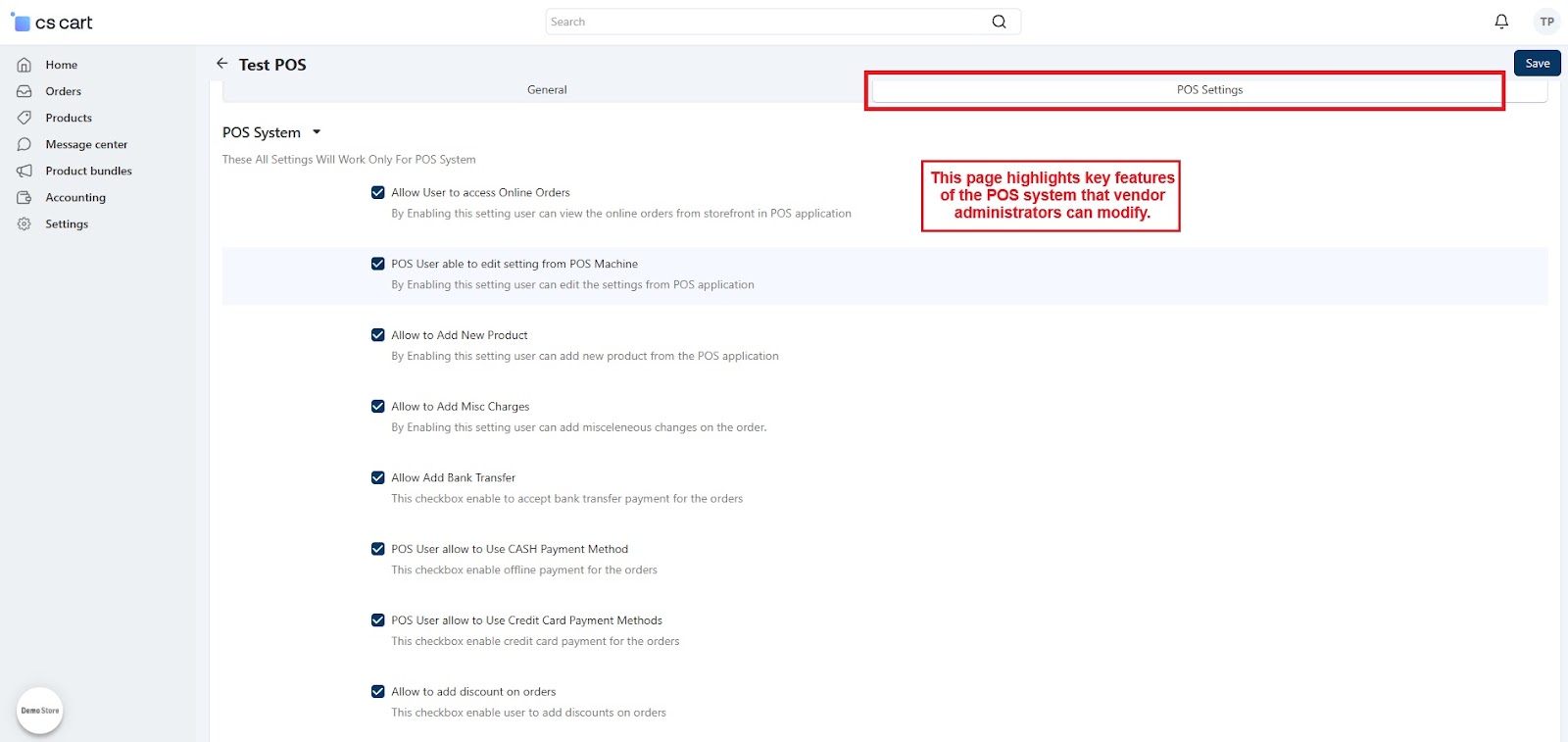 Let’s look into how the vendor administrator can set the POS settings in the vendor panel.
