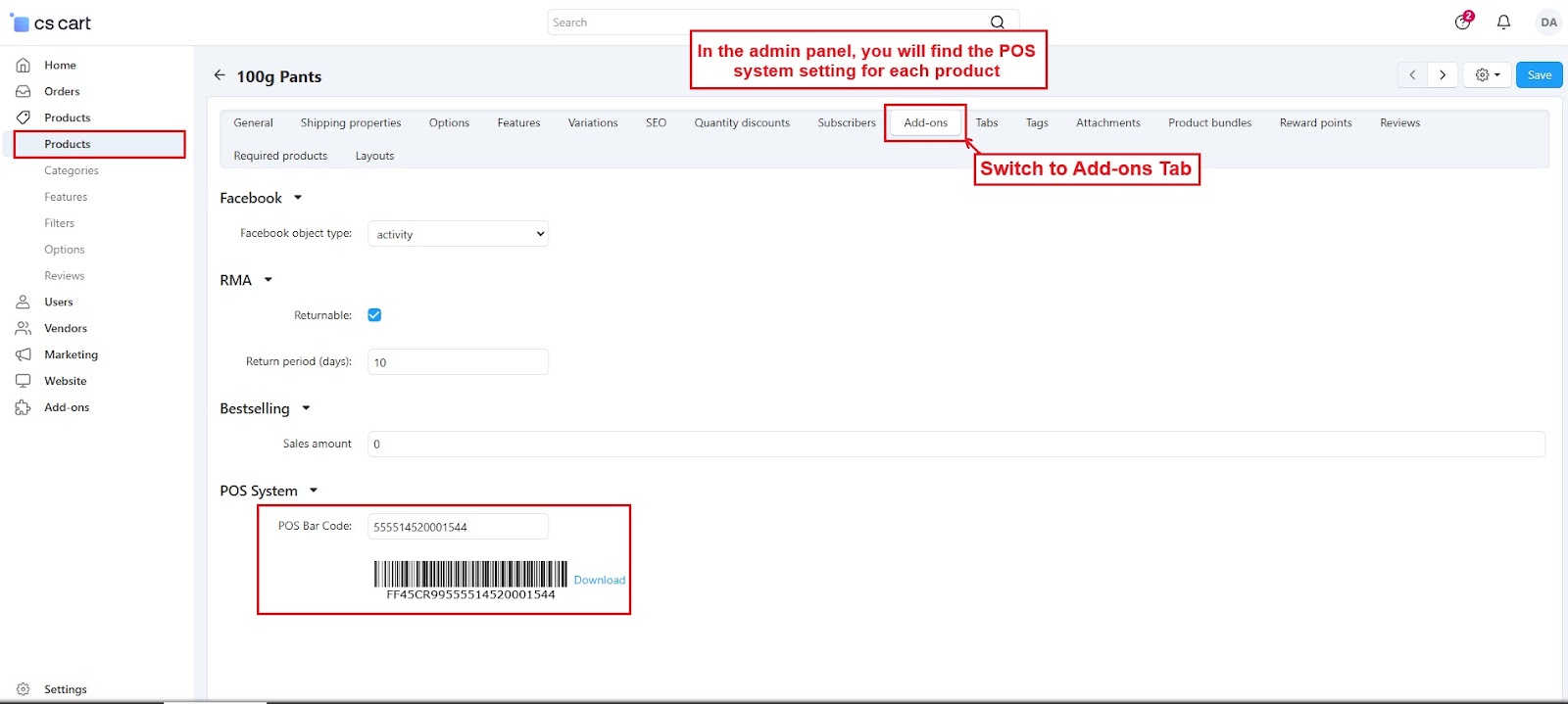The POS barcode in the admin panel helps store staff easily check product details and keep track of inventory.