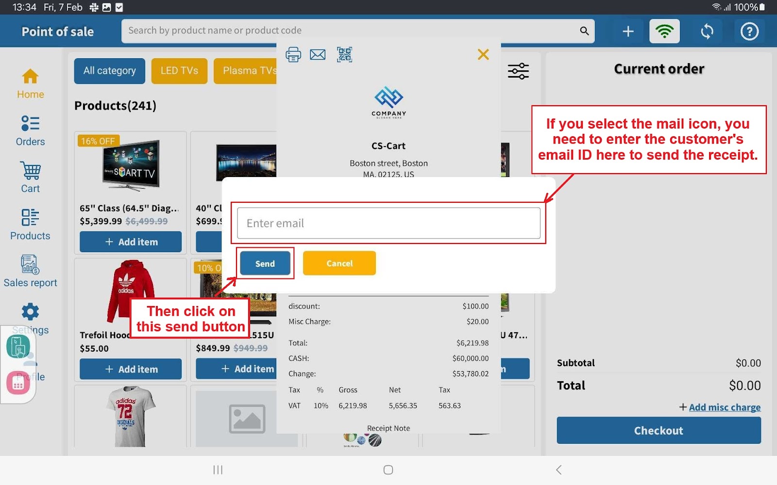 Quickly create and send detailed order receipts to customers through email, printing, or a QR code.