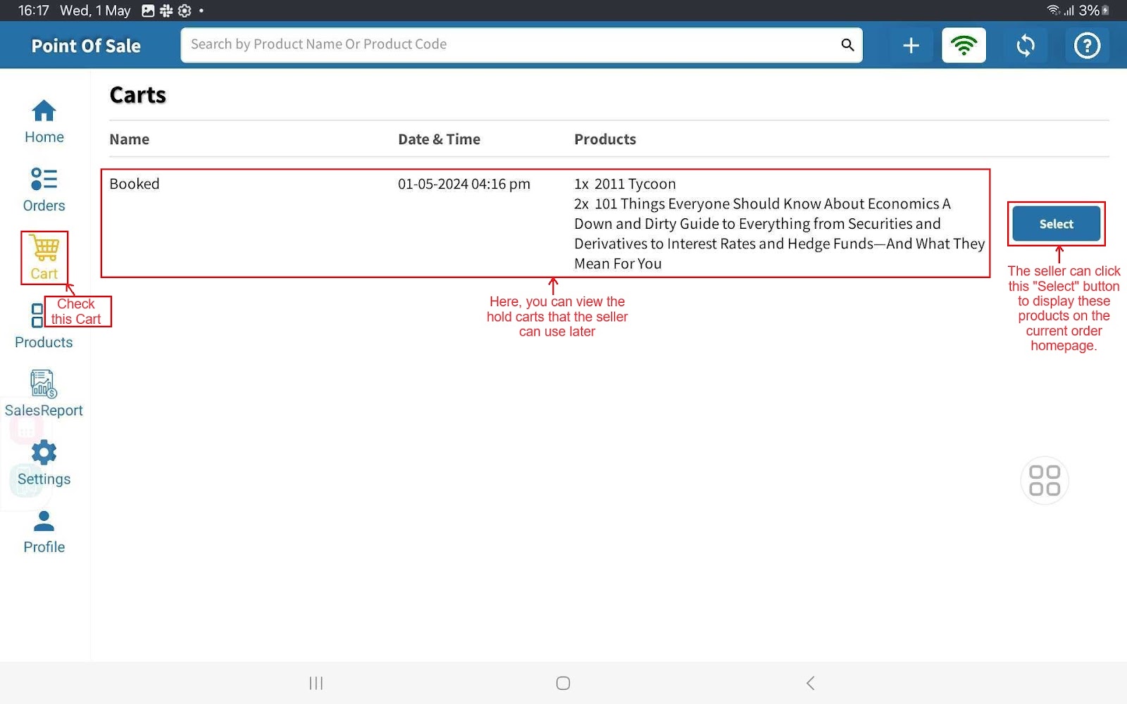 The Hold Cart feature allows sellers to pause carts. They can easily resume them later when needed.