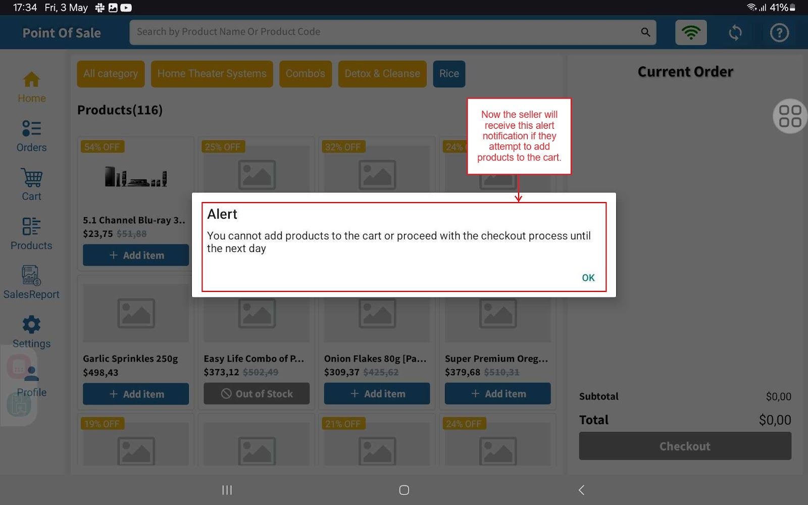 In the Current Order box, you can see the added products. Using (+) and (-) buttons, sellers can increase or decrease the quantity of the product.