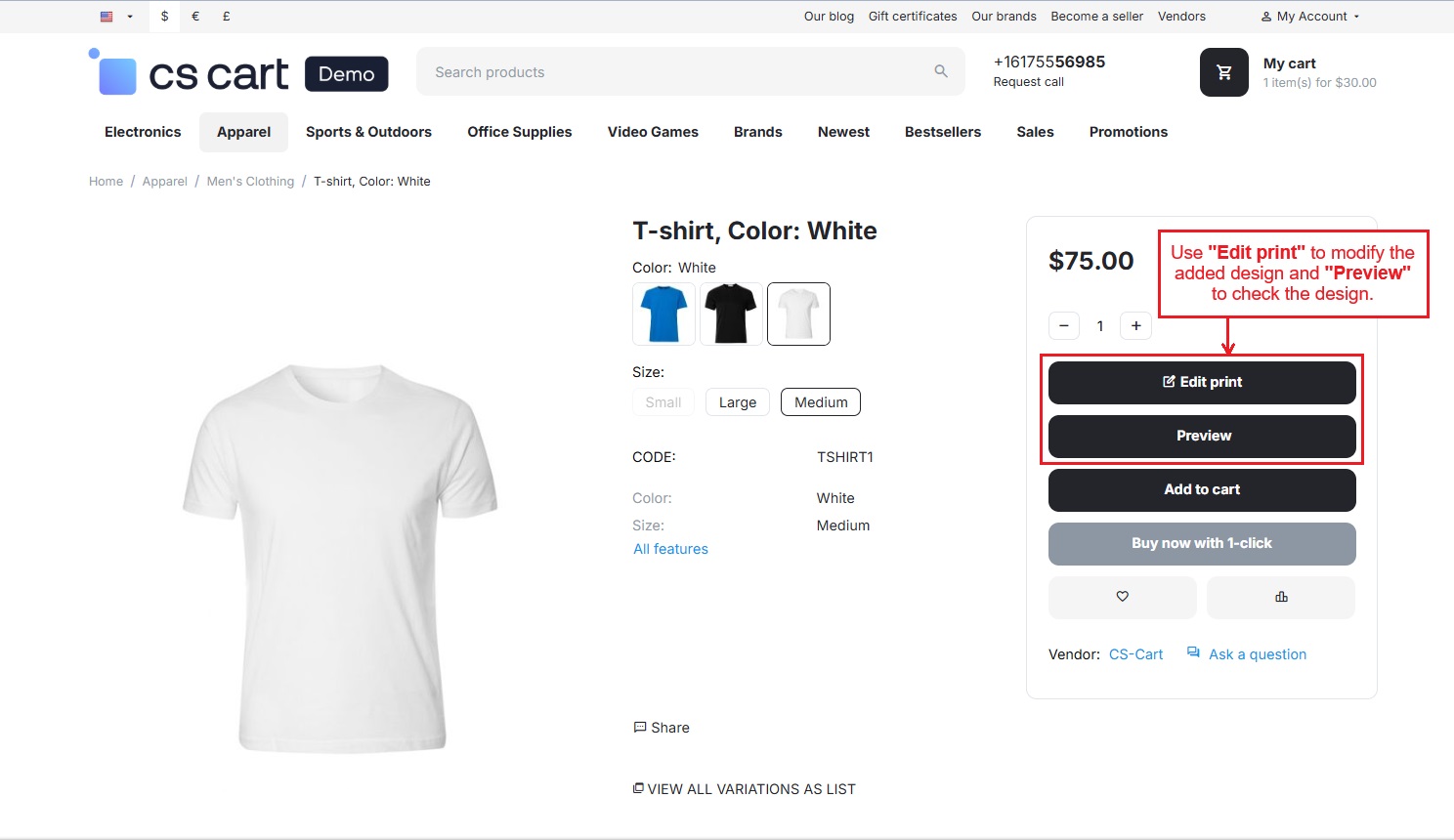 Now, the product details page shows “Edit Print” and “Preview” options. Use “Edit Print” to modify the existing design, and “Preview” to review it.