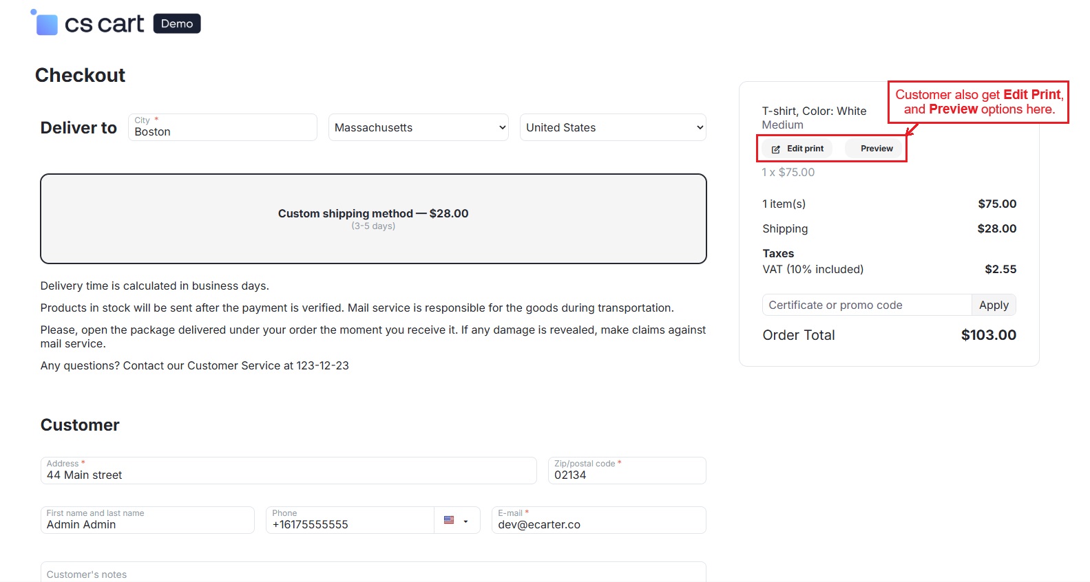 Design Preview and Edit: Preview designs before checkout. Edit or re-create designs from the cart or product page.