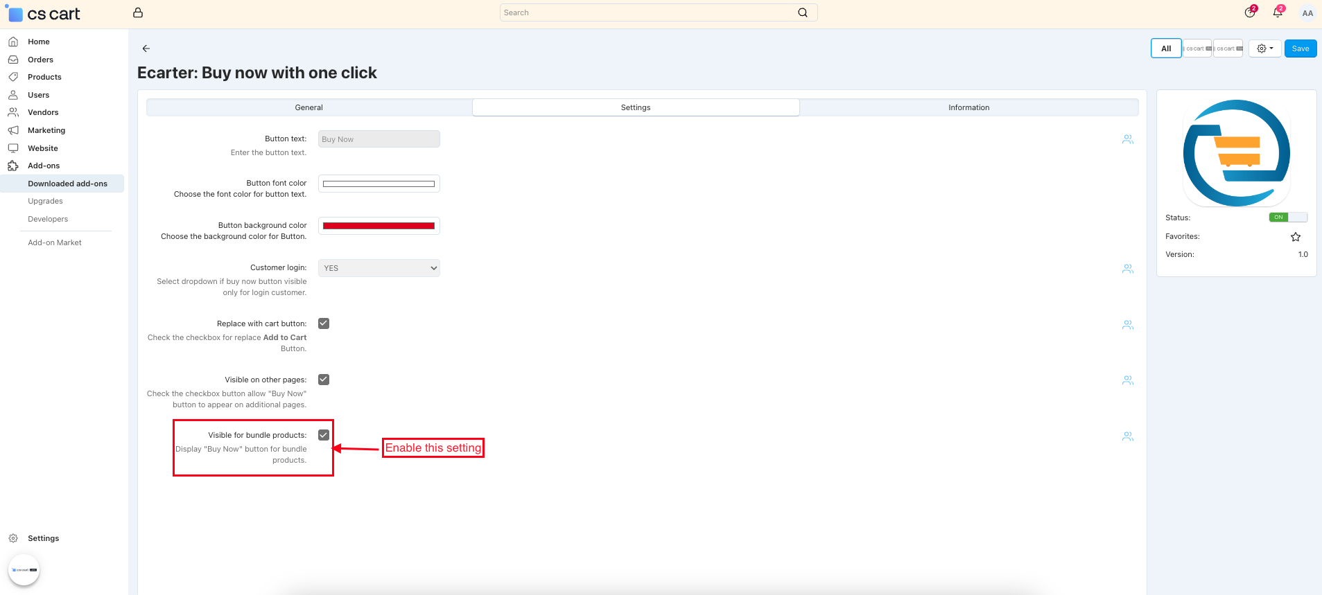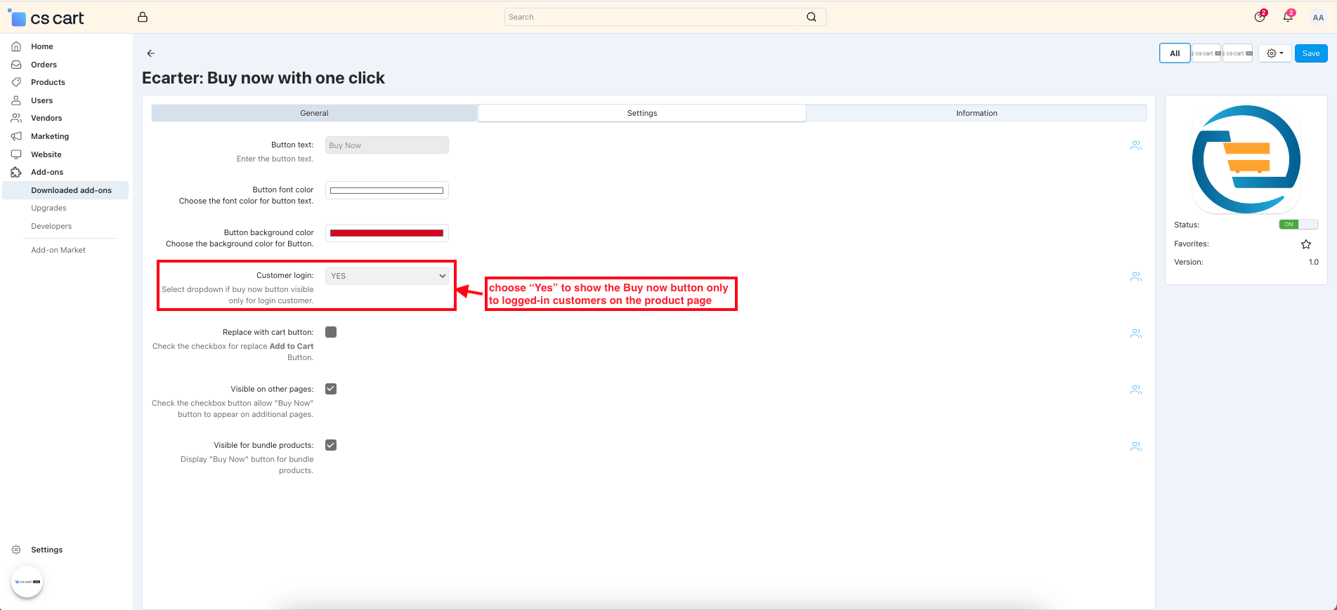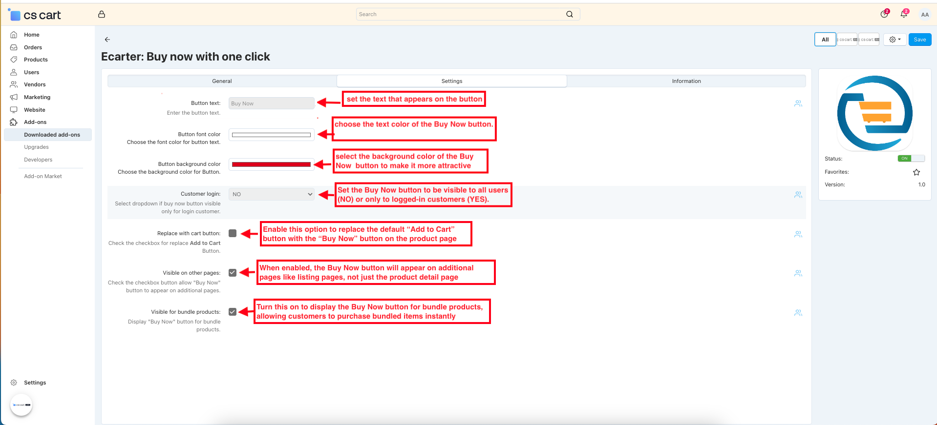 - Product-Level Control: Enable or disable the Buy Now button for individual products from the product Add-on tab.