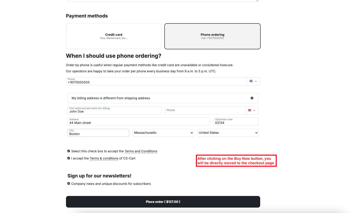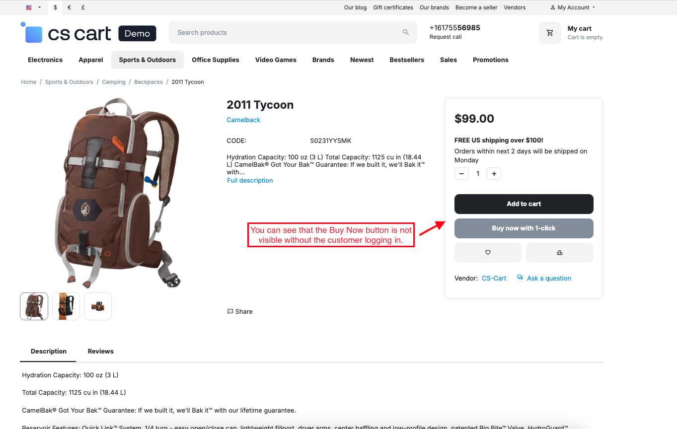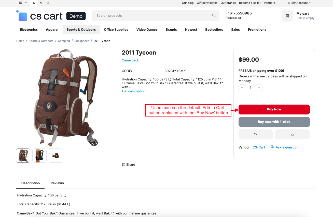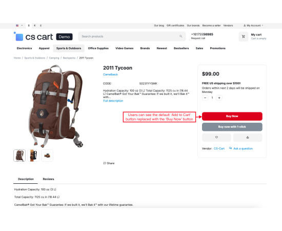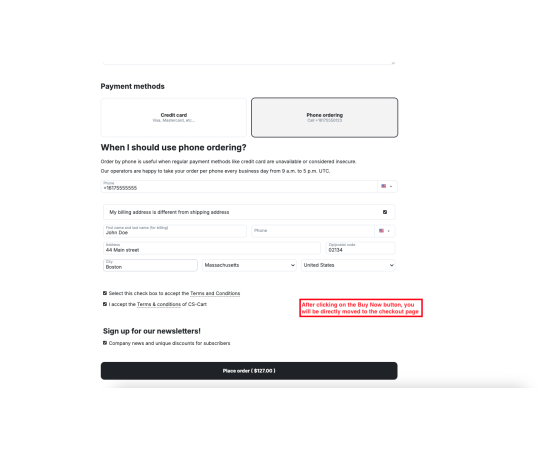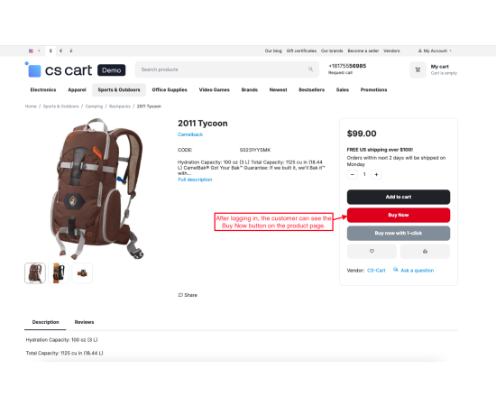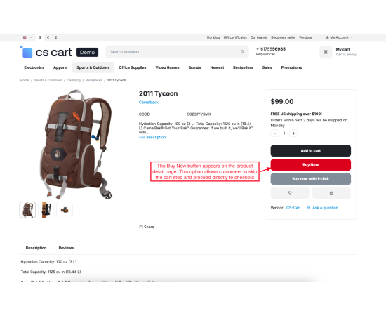 The CS-Cart Buy Now With One Click feature helps customers complete their purchases instantly without going through multiple checkout steps. With just a single click, users can directly place an order using their saved address, payment, and shipping details, making the buying process faster and more convenient.