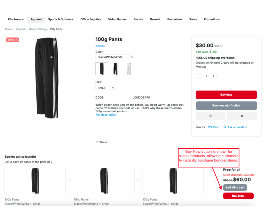 - Buy Now for Bundle Products: Enable the Buy Now button for bundle products so customers can instantly purchase bundled items.