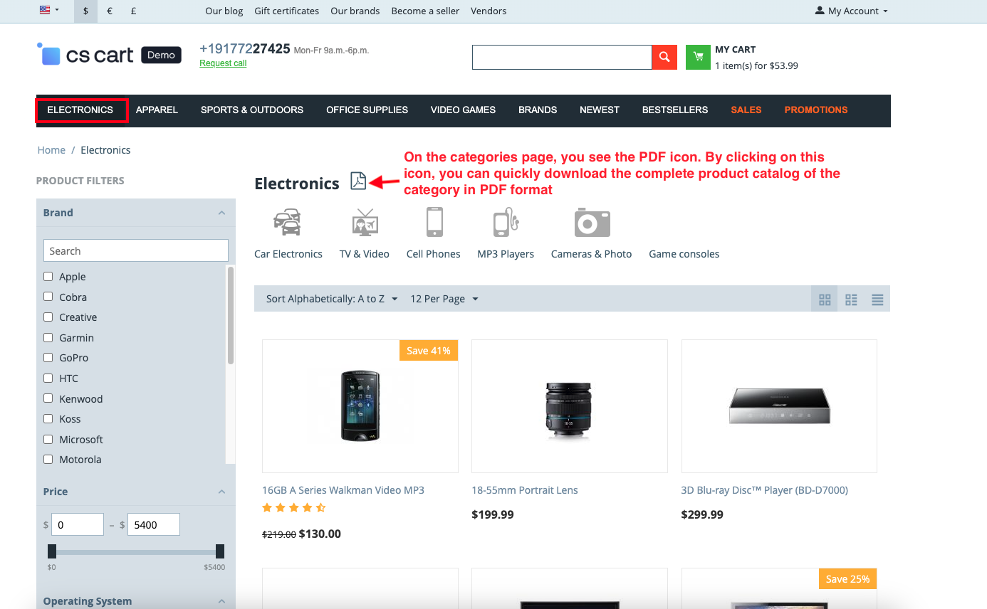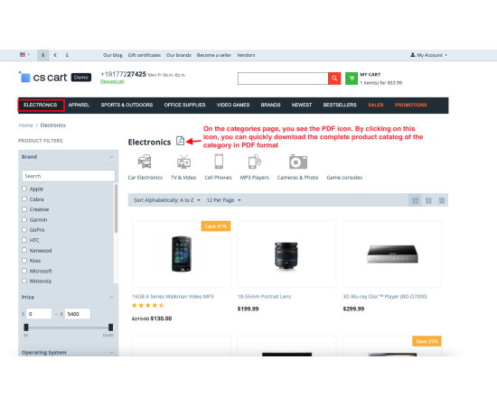 - Category Page PDF: Download the product catalog of any category with a single click from the category page.