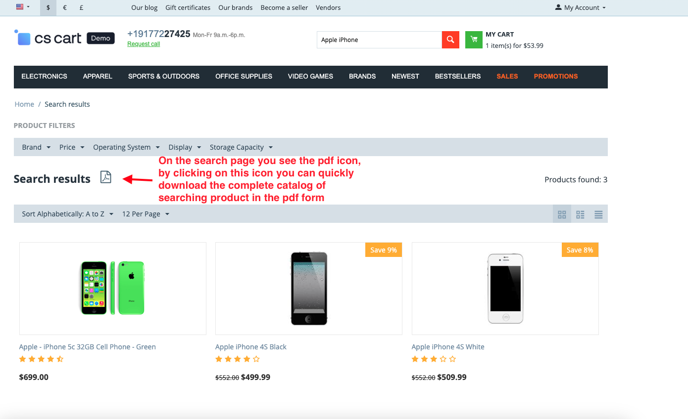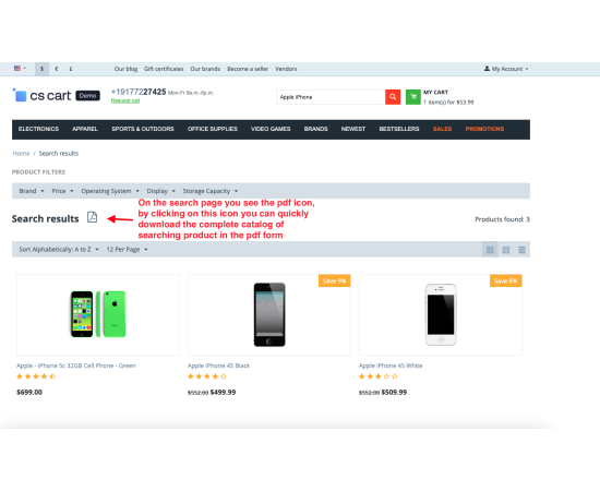 - Search Page PDF: instantly get a catalog of all products shown in the search results.