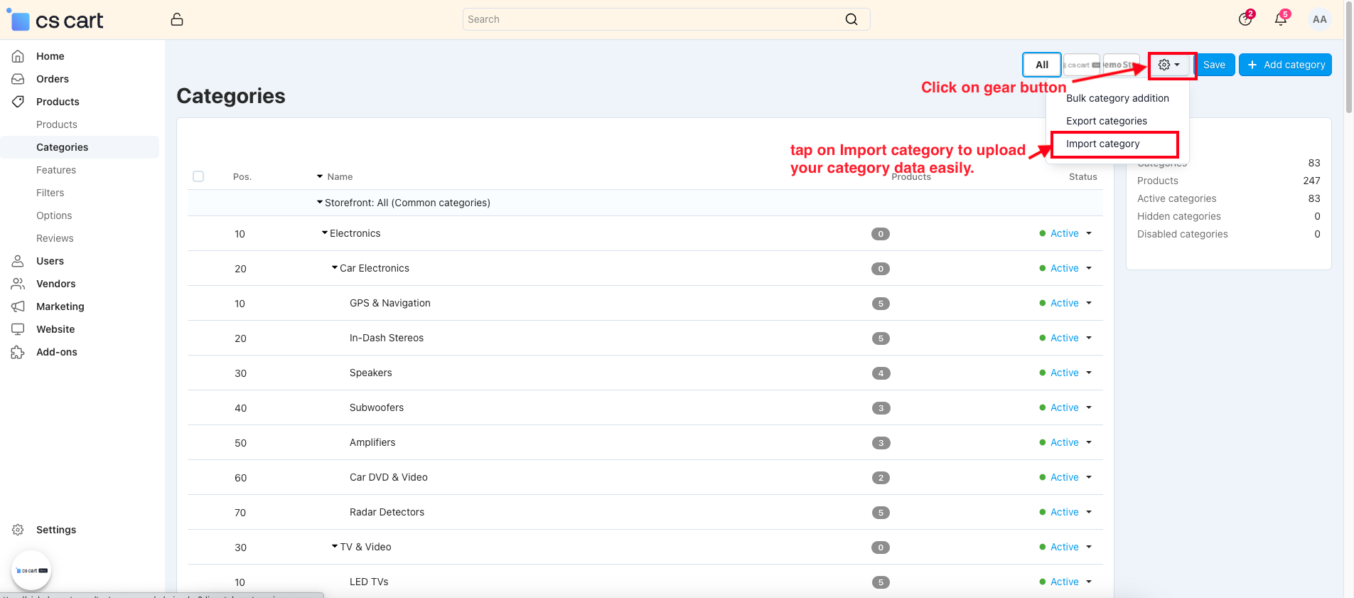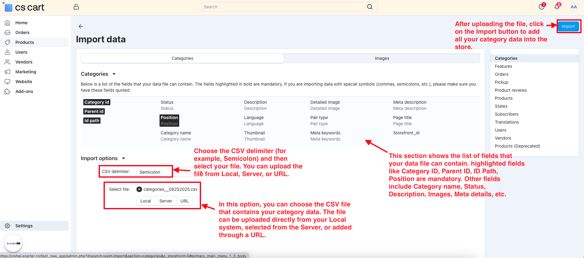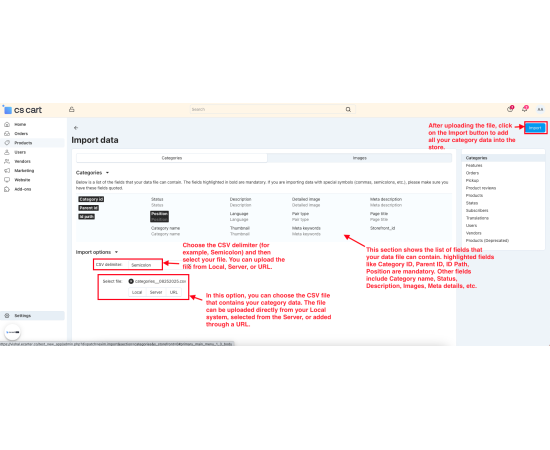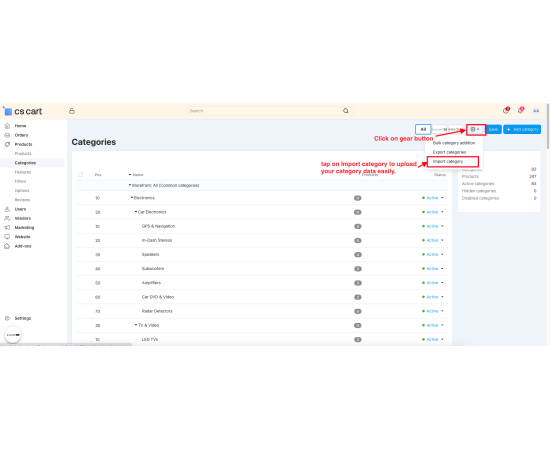 - Import Categories data: Upload multiple categories at once to save time and keep your store organized.
