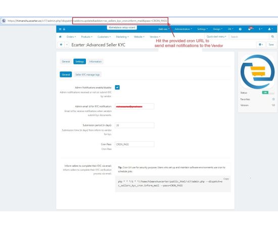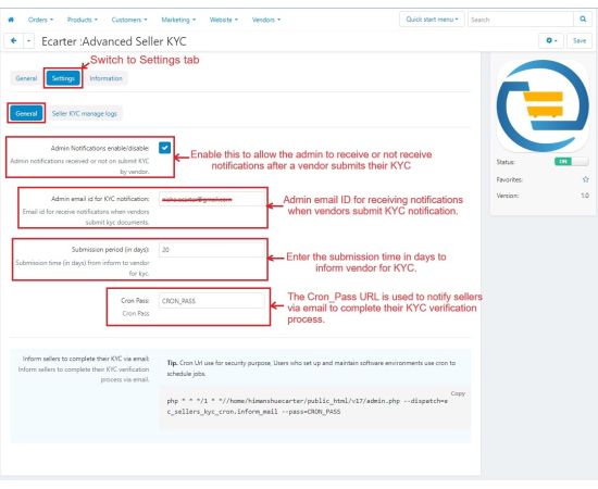 - Enable the "admin notification" which allows the admin to receive notifications when vendors submit KYC documents.