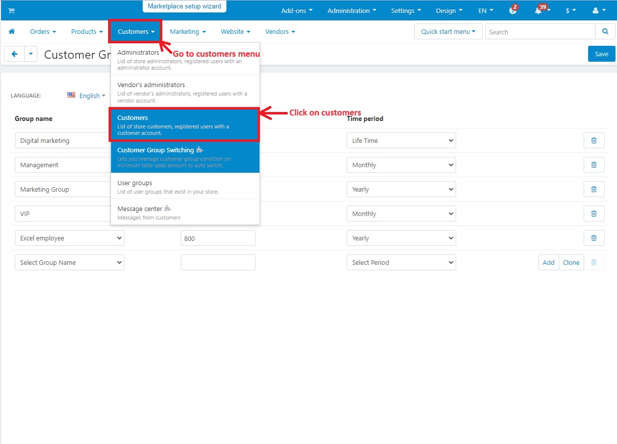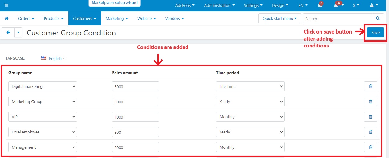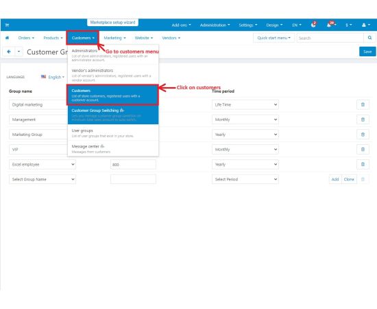 - Create and Manage Customer Groups: Store admin can simply create and manage customer groups, offering custom pricing, and special deals with factors like time and sales amount.