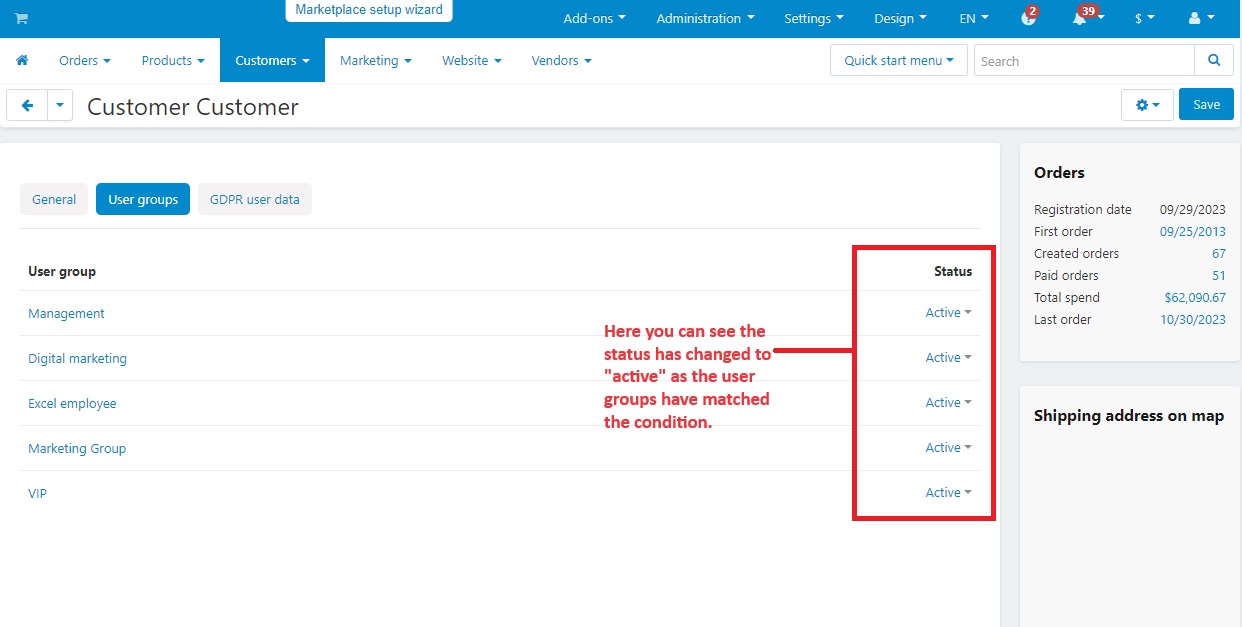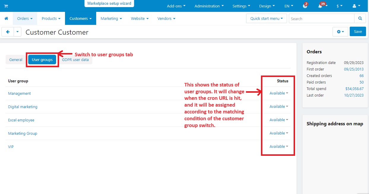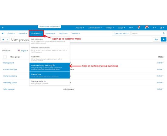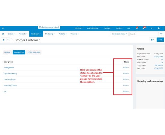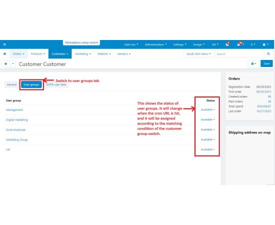- Auto-Group Switching: CS-Cart’s Auto customer group switching automatically categorizes customers into particular groups based on their history of total purchase, ensuring special benefits for customers who spend more or are loyal to the store.