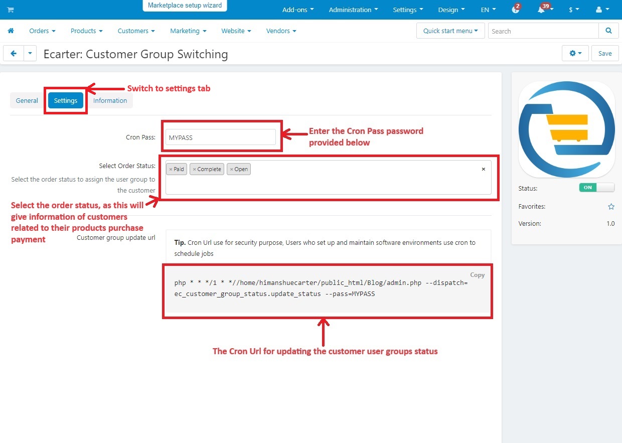 - Automatic Group Updates: Use cron url to automatically update the customer user groups status.