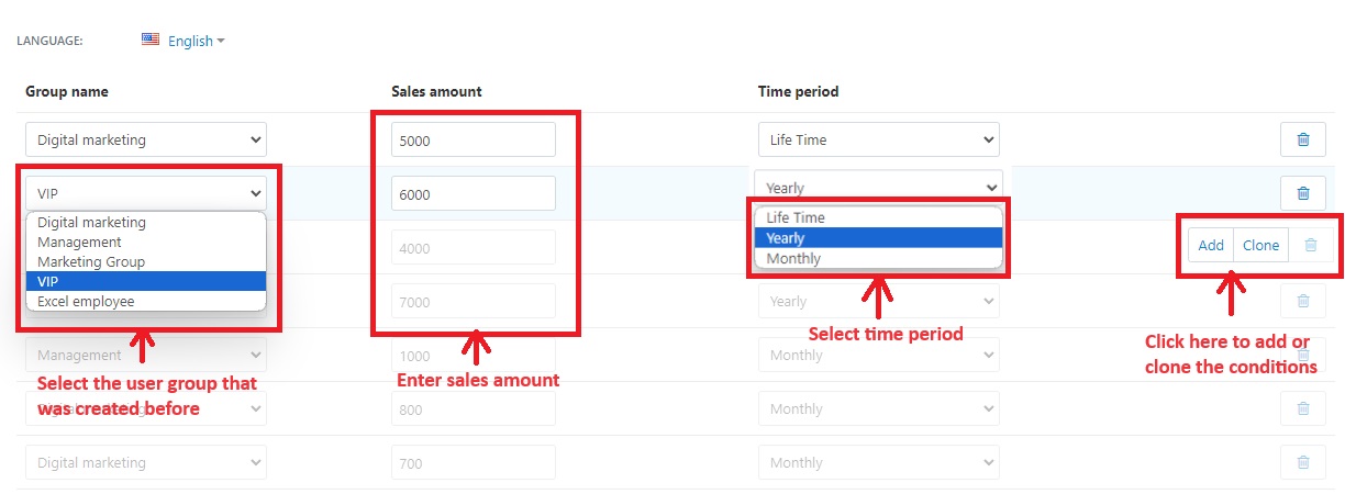 - Monitor and Adjust Groups: Monitor customer purchase behavior and adjust group conditions accordingly.