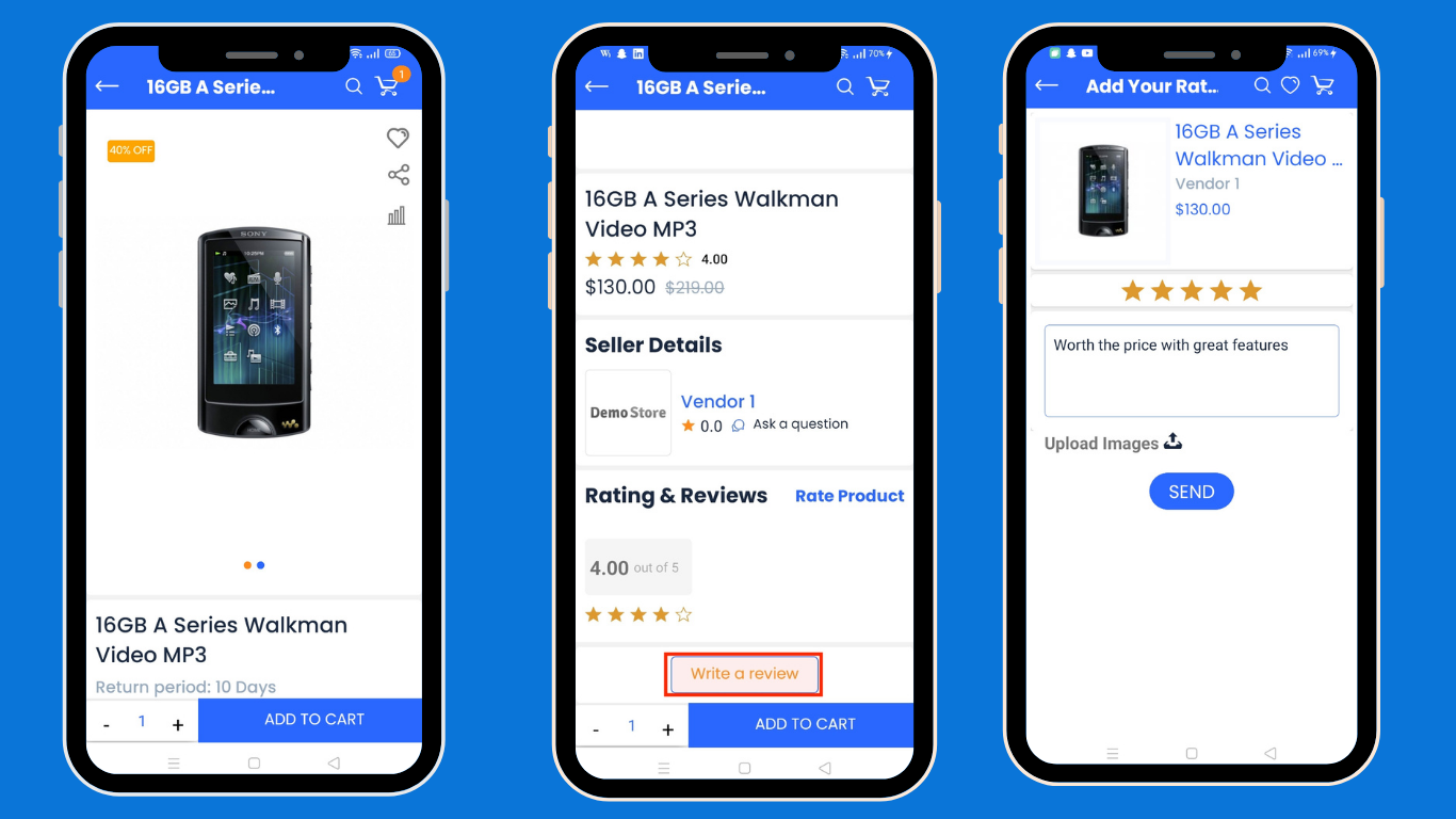 - Product Reviews: Customers can write and read reviews to help others make better choices.