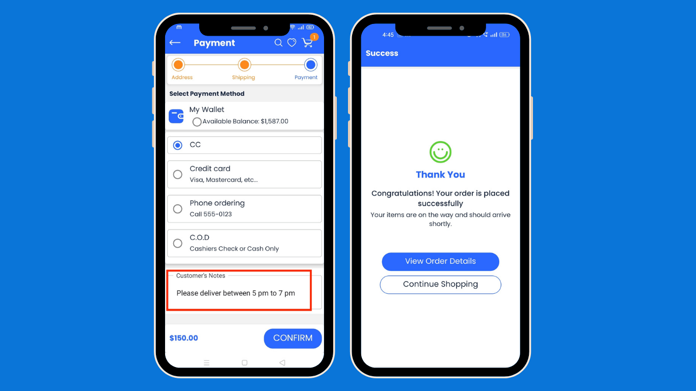 - Multiple Payment Methods: Pay easily with options like Cash on Delivery, Credit Card, or Wallet during checkout.