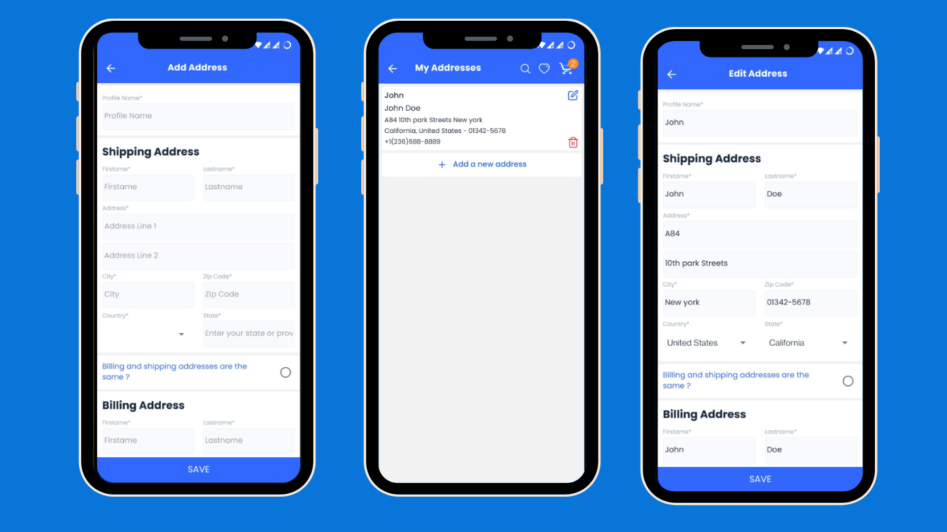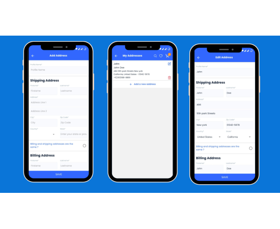 - Address Management: Users can add or edit multiple shipping and billing addresses for checkout.