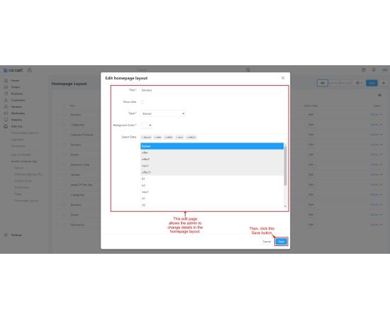 - Banner Management: Admins can view, add, and update banners for the homepage layout.