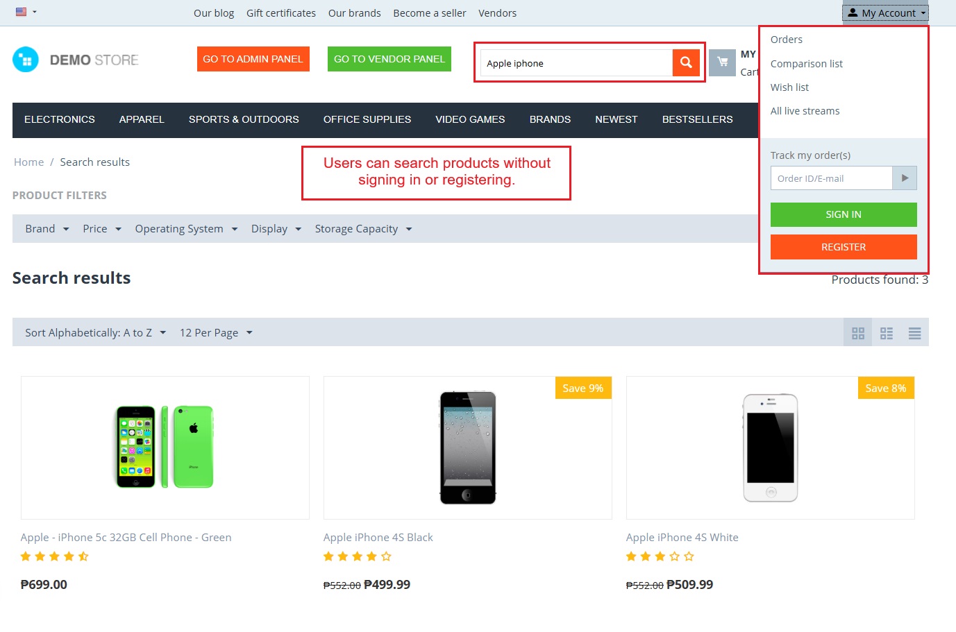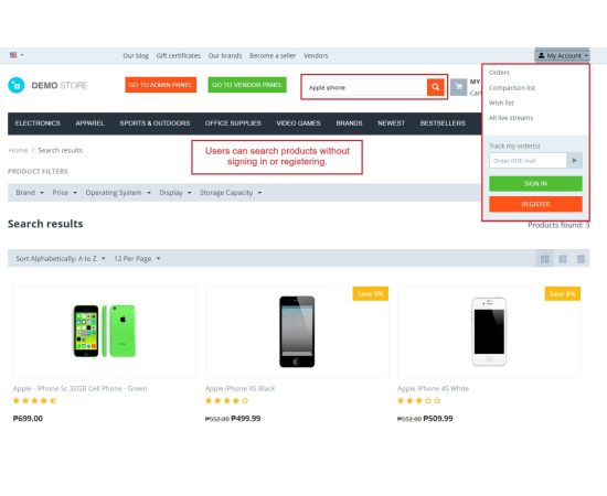 - Works Without Login – Users can search products without signing in.