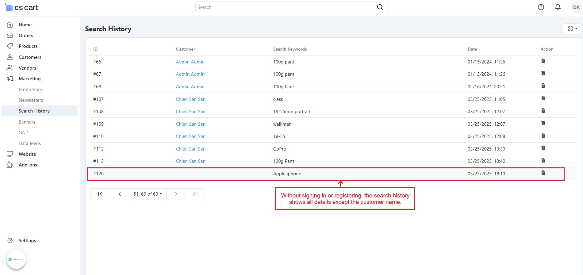 - Track Search History – The admin can see what products customers search for, along with details like name, date, and time.