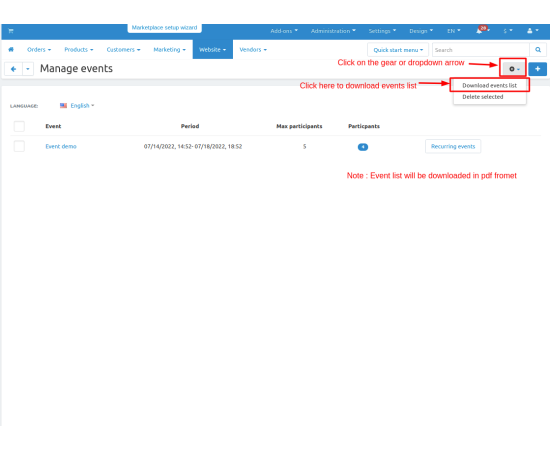 The CS Cart Event Management Addon lets you turn your store into an event hub. You can create events with dates, attendee limits, and link them to products so customers can buy tickets directly. After they order, customers can download their tickets from their account.