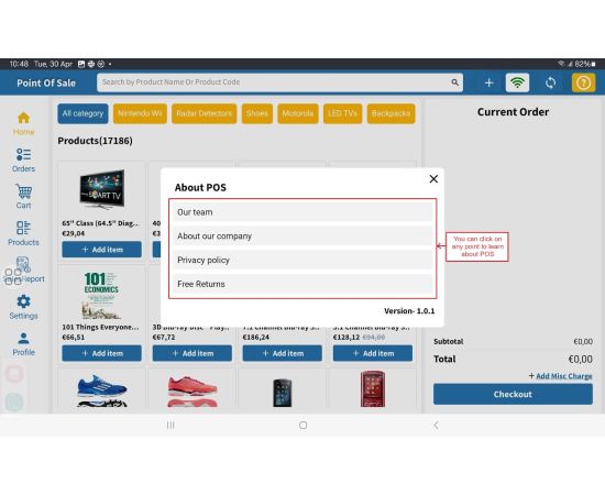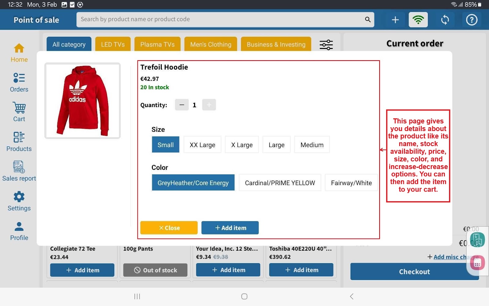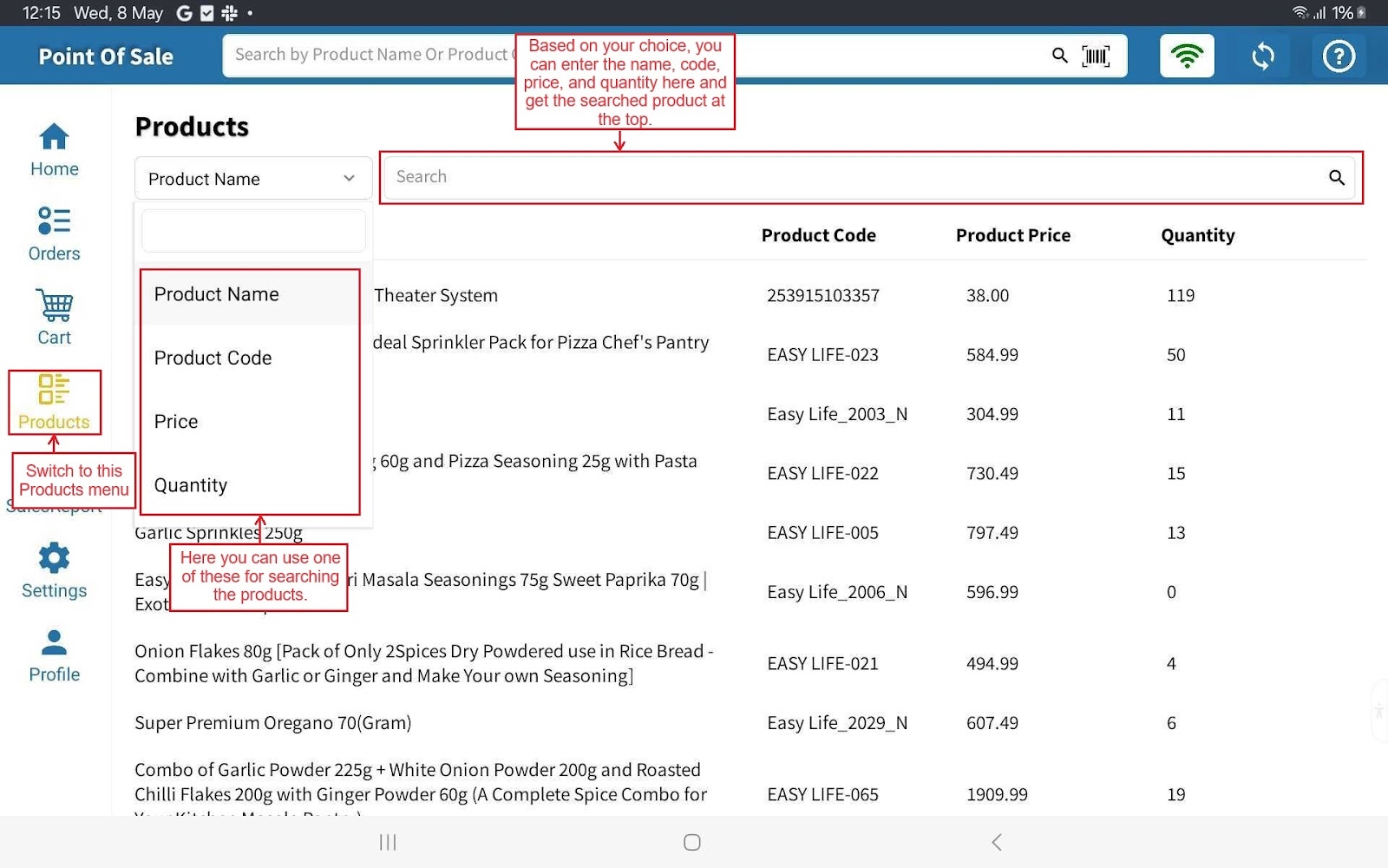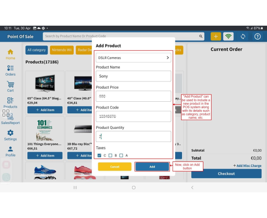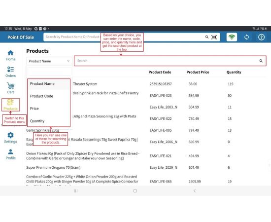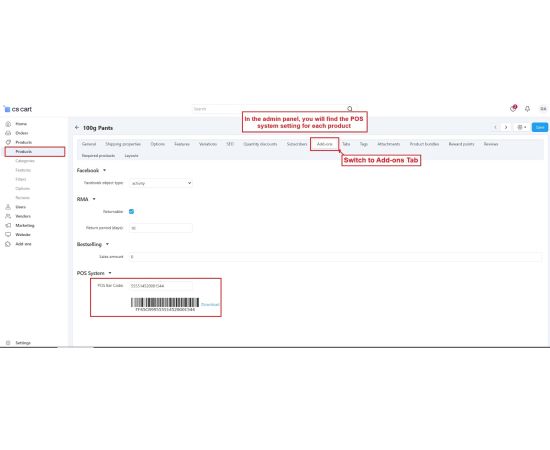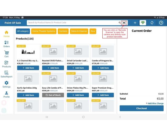- The POS system allows users to use the camera to scan the barcode of the product.
