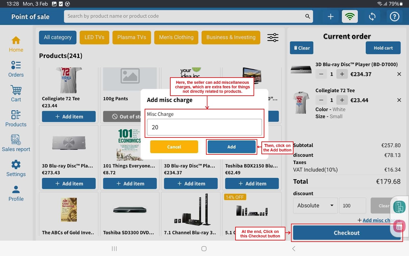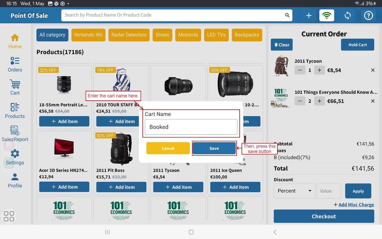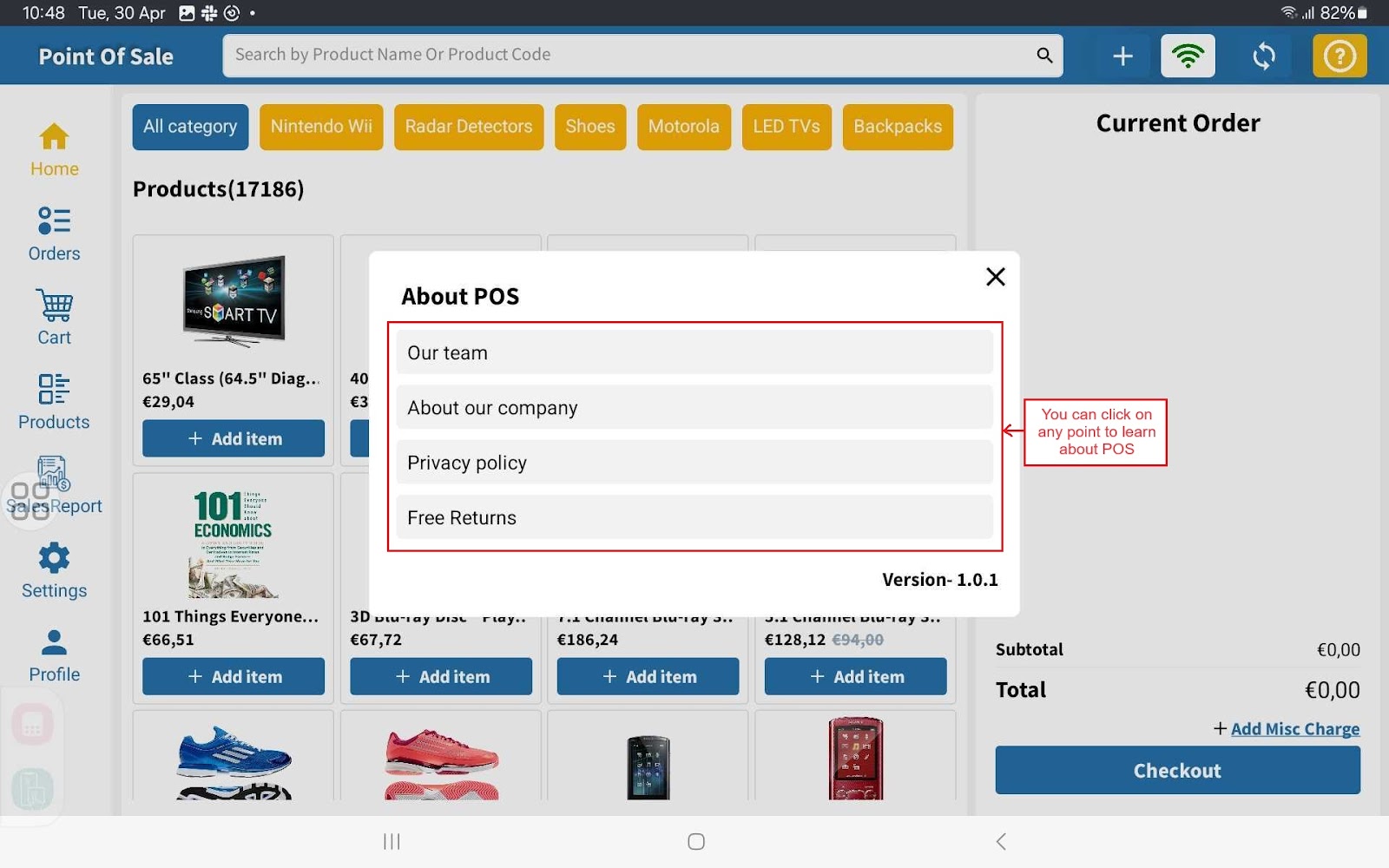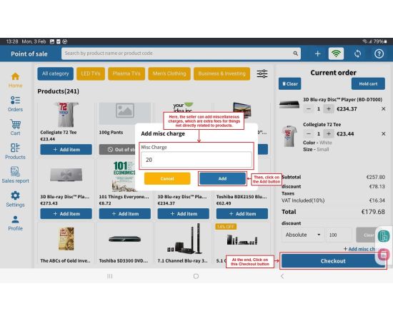- The POS system allows users to use the camera to scan the barcode of the product.