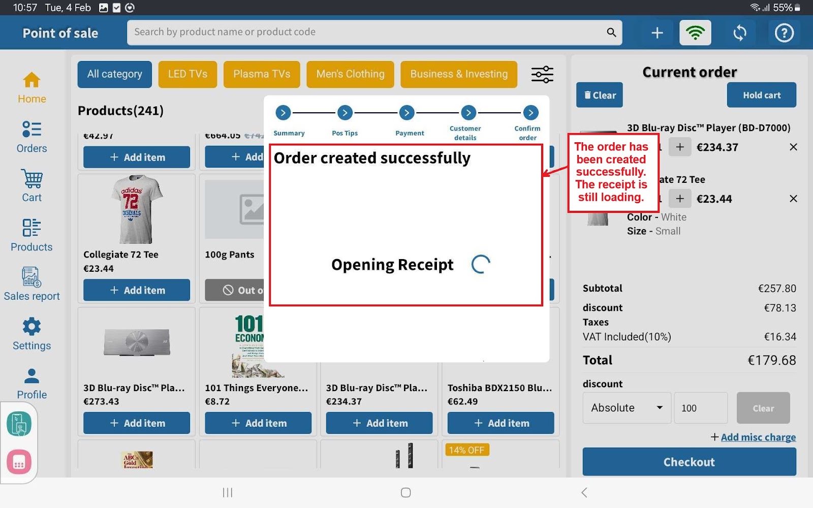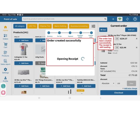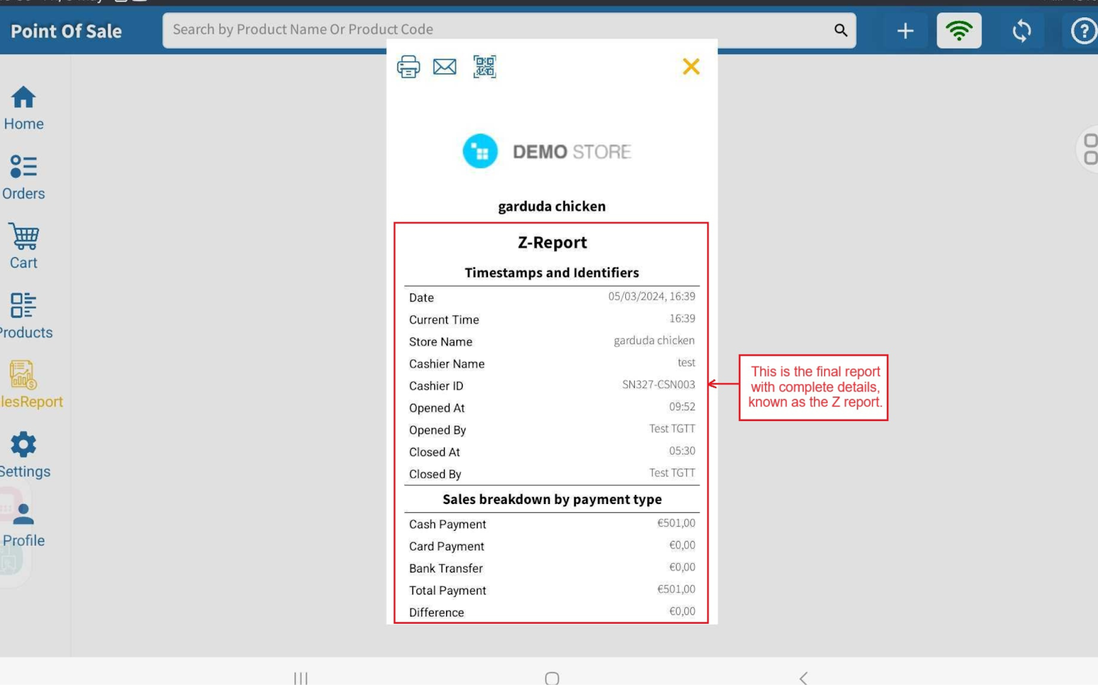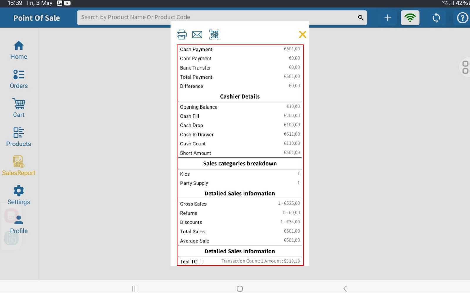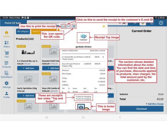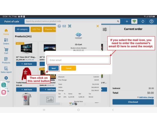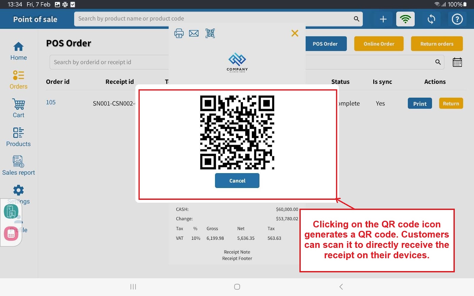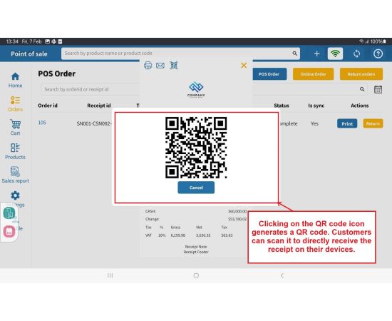 - Quickly create and send detailed order receipts to customers through email, printing, or a QR code.