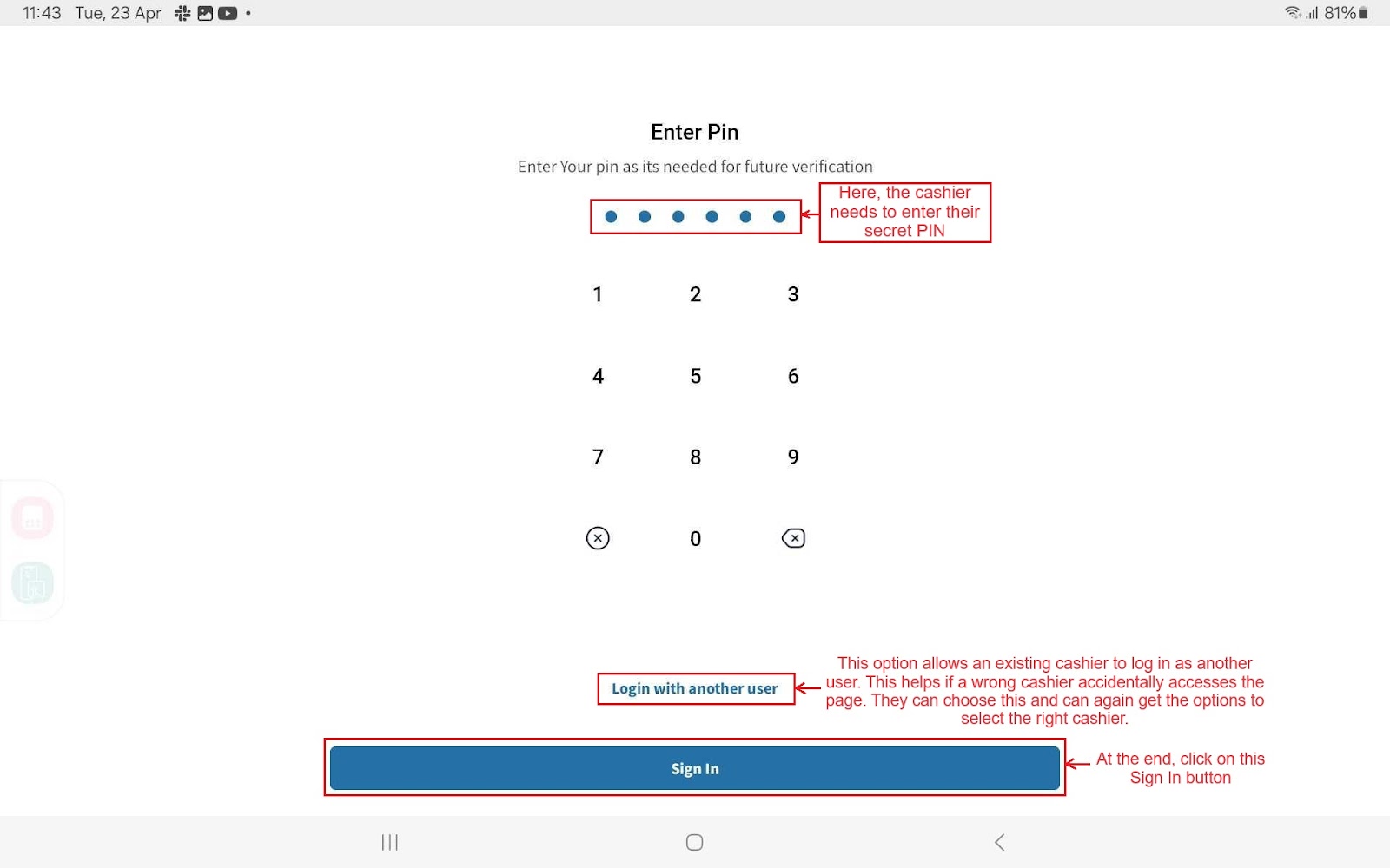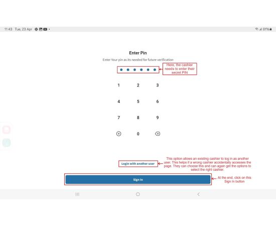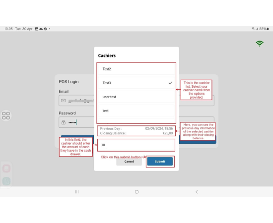 - Admin can view and manage a list of cashiers along with their information. They can also add new cashiers.