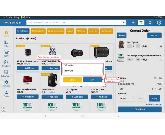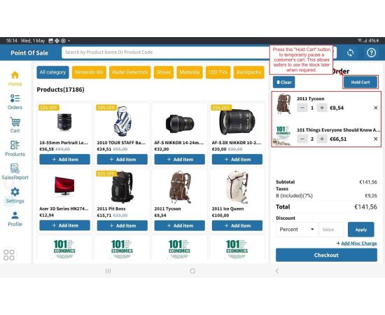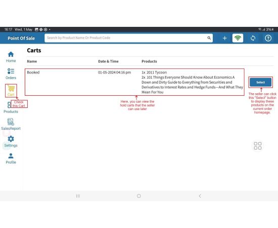 - The Hold Cart feature allows sellers to pause carts. They can easily resume them later when needed.