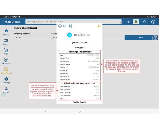 - The system tracks sales easily with X-Reports and Z-Reports. It helps sellers to look into their performance and handle cash drawers easily.